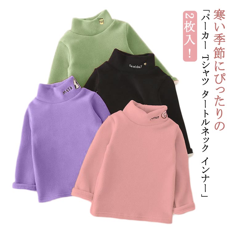 パーカー パーカー タートルネック 長袖 ハイネック キッズ インナー 裏起毛 キッズ 2枚入 インナーシャツ あつたか ハイネック トップス キッズ 子供 ジュニア こども服 保温 暖かい 裏起毛 キッズ用 冬用 女の子 男の子