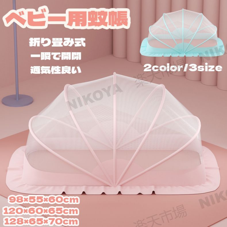 【使い方は簡単】【細かい網目】【360℃保護】【選べる3サイズ! 折りたたみ式】【遮光性】【大きなスペース】ご使用際にかぶせるだけで簡単に蚊や害虫などからしっかり赤ちゃんを守ります。六角型の形状で作りは頑丈で、網目も細かいなので、小さい虫でも侵入不可!蚊帳の下部に裾があるので、蚊は底部分からの侵入も防ぎます。折りたたみ式なので、わずか数秒で簡単に開閉ができます。夏のお出かけにも役立ちます♪頭部部分が布生地なので、光やエアコンの風を防ぐ事もできます。4つのワイヤーを採用し、大きなスペースを確保することができます。 サイズS M Lサイズについての説明S 99*55*60CM 0-1.5歳使用 M 110*60*65CM 0-3歳使用 L 129*60*65CM 0-5歳使用素材PE ポリエステル メッシュ色ブルー ピンク備考 ●サイズ詳細等の測り方はスタッフ間で統一、徹底はしておりますが、実寸は商品によって若干の誤差(1cm〜3cm )がある場合がございますので、予めご了承ください。●製造ロットにより、細部形状の違いや、同色でも色味に多少の誤差が生じます。●パッケージは改良のため予告なく仕様を変更する場合があります。▼商品の色は、撮影時の光や、お客様のモニターの色具合などにより、実際の商品と異なる場合がございます。あらかじめ、ご了承ください。▼生地の特性上、やや匂いが強く感じられるものもございます。数日のご使用や陰干しなどで気になる匂いはほとんど感じられなくなります。▼同じ商品でも生産時期により形やサイズ、カラーに多少の誤差が生じる場合もございます。▼他店舗でも在庫を共有して販売をしている為、受注後欠品となる場合もございます。予め、ご了承お願い申し上げます。▼出荷前に全て検品を行っておりますが、万が一商品に不具合があった場合は、お問い合わせフォームまたはメールよりご連絡頂けます様お願い申し上げます。速やかに対応致しますのでご安心ください。