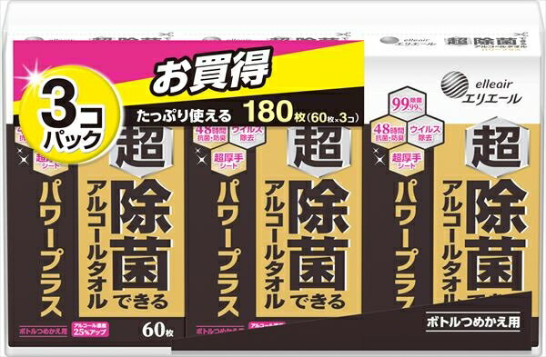 超除菌できるアルコールタオルパワー+替60枚×3P