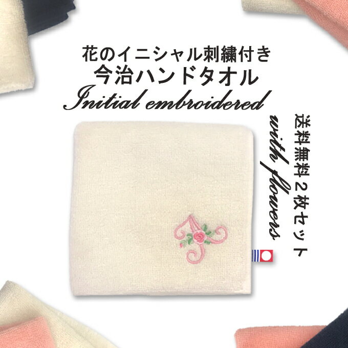 今治 ハンドタオル イニシャル 刺繍 花 2枚 日本製 今治タオル ギフト プレゼント ペア ラッピング 送料無料 今治産 国産 記念日 出産 誕生日 入学 贈り物 内祝い ハンカチ アルファベット 両親 彼女 女性 祖父 義母