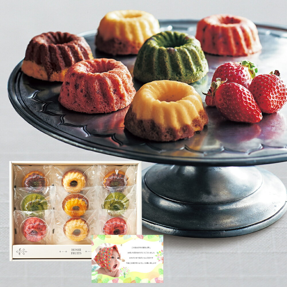 迷ったら?まずはギフト診断!▼ ●こちらの商品は【宅配商品】のため、デジタルメッセージには対応しておりません。 SNSですぐに贈れる【e-Gift】はこちらからどうぞ>>> ●お熨斗は「ご自宅届け」「複数ご注文」「仏事利用」の場合は【外熨斗】でお届けしております。 上記のご用途で【内熨斗】をご希望の場合は、備考欄にてご指示をお願いいたします。 商品によっては【内熨斗】のご指定ができないものもございます。予めご了承ください。 【商品について】果実風味の生地に、フレーバーやつぶつぶ果実をプラス。ひと口で、ふたつおいしいかわいらしいクグロフです。●商品内容:ストロベリーinクランベリー・パイン&アールグレイ・抹茶in小豆・チョコ&バナナ×各2個、ココナッツ&キャラメル×1個●箱サイズ(cm):32.5×24.8×6.3●宅配時の状態:常温●賞味期間(製造日より):60日●7大アレルゲン:卵、乳、小麦 【ご留意】 ◎複数の商品をご注文頂いた場合、同時のご注文でも、商品により到着日が異なることがございます。 ◇◆ 価格から商品を探すにはこちら ◇◆ =================== ¥3,000までの商品 =================== ¥3,000から¥5,000の商品 =================== ¥5,000から¥10,000の商品 =================== ¥10,000以上の商品 =================== 他にもいろいろ♪出産内祝いギフト▼ 内祝いで人気の名入れプリンギフトはこちらから▼ 平日正午、土日祝9時までのご注文で即日出荷!"最強配送"商品▼ 贈り物に喜ばれる千疋屋ギフト▼ ▼さまざまな用途でご利用いただけます 【お祝】 結婚祝い 出産祝い 初節句 七五三 入園祝い 入学祝い 卒園祝い 卒業祝い 成人祝い 就職祝い 昇進祝い 新築祝い 引っ越し祝い 引越し祝い 開店祝い 退職祝い 快気祝い 全快祝い 初老祝い 還暦祝い 古稀祝い 喜寿祝い 傘寿祝い 米寿祝い 卒寿祝い 白寿祝い 長寿祝い 金婚式 銀婚式 ダイヤモンド婚式 結婚式 披露宴 引き出物 引出物 結婚引き出物 結婚引出物 ブライダルギフト ウェディングギフト 上棟祝い 記念日 誕生日 結婚記念日 【内祝】 結婚内祝い 出産内祝い 命名内祝い 入園内祝い 入学内祝い 卒園内祝い 卒業内祝い 就職内祝い 新築内祝い 引越し内祝い 快気内祝い 開店内祝い 【お返し・ご挨拶】 お祝い返し お礼 御礼 ごあいさつ ご挨拶 御挨拶 プレゼント お見舞い お見舞御礼 お餞別 引越し 引越しご挨拶 退職 異動 【イベント・記念品】 母の日 父の日 敬老の日 バレンタイン ホワイトデー こどもの日 ひな祭り お正月 文化祭 運動会 七夕 ハロウィン クリスマス ブラックフライデー 年末年始 新生活応援 季節の贈り物 お中元 御中元 お歳暮 御歳暮 お年賀 御年賀 残暑見舞い 年始挨拶 ゴルフコンペ 景品 賞品 粗品 コンペ景品 卒業記念品 定年退職記念品 【弔事・法要】 お香典返し 香典返し 志 満中陰志 弔事 会葬御礼 法要 法要引き出物 法要引出物 法事 法事引き出物 法事引出物 忌明け 四十九日 七七日忌明け志 一周忌 三回忌 回忌法要 偲び草 粗供養 初盆 供物 お供え メモリアルギフト 【商品タイプ】 スイーツギフト グルメギフト 和菓子 洋菓子 お菓子 詰め合わせ お取り寄せグルメ 名店グルメ 高級スイーツ 人気スイーツ 手土産 季節限定 贈答用スイーツ 老舗 おしゃれ 実用的 喜ばれるギフト 【ターゲット・関係性】 上司 同僚 部下 友人 両親 親戚 祖父母 子供 会社関係 取引先 男性向け 女性向け 子供向け 家族向け 学生 新社会人 子育て世代 シニア世代 10代 20代 30代 40代 50代 60代 70代 80代 90代 【その他】 即日発送 あす楽対応 可能商品多数 ポイント消化 選べる 人気ランキング入り 大量注文対応 見積書対応 請求書払い 領収書発行 【アイプレゼンツのギフトサービス】 のし無料 ラッピング無料 メッセージカード無料 手提げ袋無料 送料無料 などのサービスが充実。 見た目も味も楽しめる贈り物で、大切な方に笑顔を届けます。【限定配布中!】▼お得なクーポンはこちらから▼