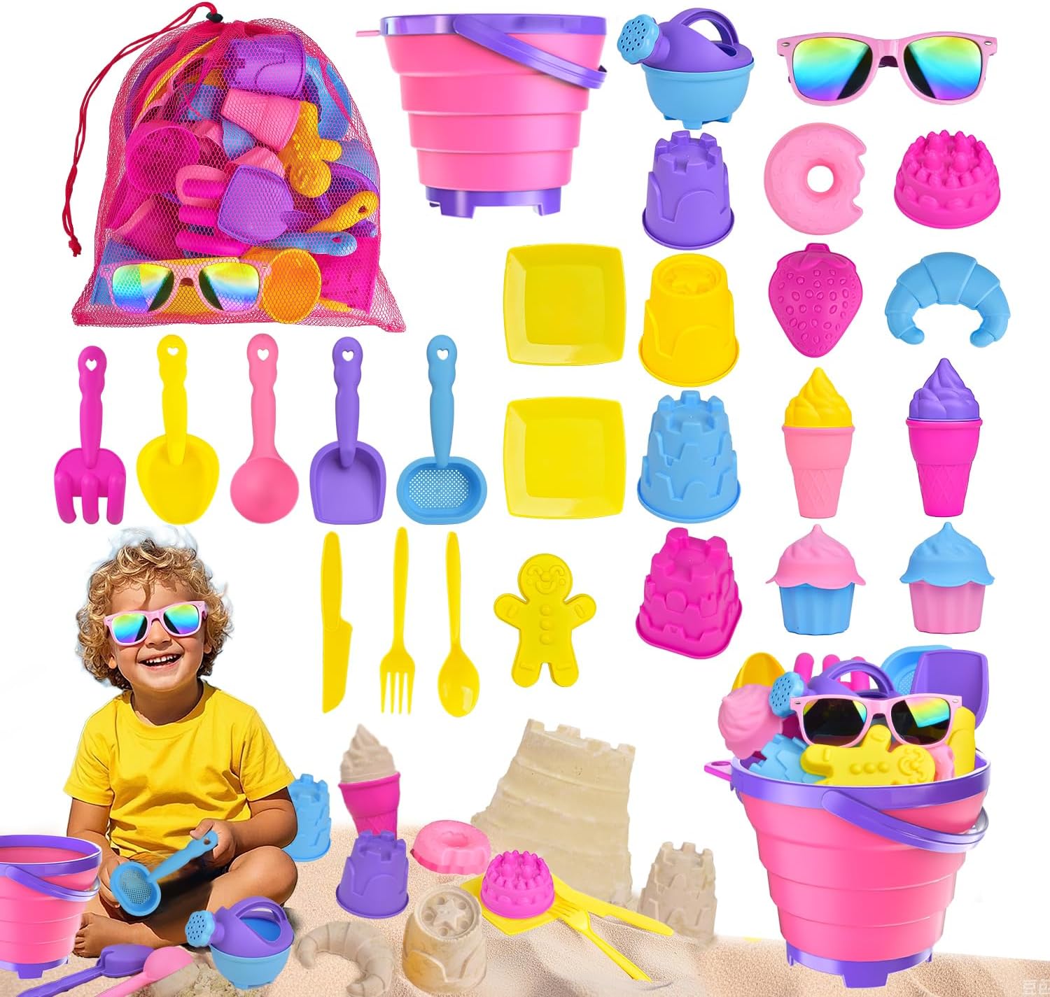 砂場セット 31個セット 砂場遊び 折り畳み可能 バケツセット水遊び 収納ボックス付き 室内 誕生日 プレゼント 屋外兼用 男の子 女の子 プレゼント ケーキセット カラフル 室内 砂遊び アウトドア遊び おでかけ遊びおもちゃ 海水浴 川遊び ビーチ遊び 公園