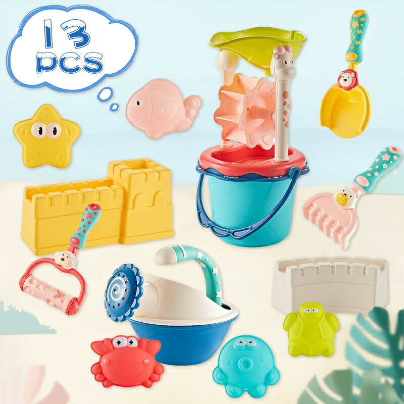 13点お砂場セット 砂遊び 水遊び 雪遊びおもちゃ カラフル 柔らかい 安全 カワイイ お風呂用 知育玩具 子供 室内用 屋外用 お家で 外遊び 砂場 海 潮干狩り公園 庭 動物 ライオン 犬 キッズ おままごと 道具 誕生日 子どもの日 プレゼント