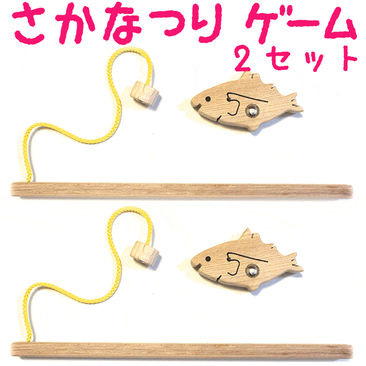 商品の説明です 商品名 職人が作る【さかなつりゲーム 2セット】 サイズ 釣り竿の長さは、19センチ 魚の大きさは、縦3.5〜6センチ・横4.5〜8.5センチ・厚み1.2センチ 釣り竿は1本、魚は、いるか、ふぐ、ひらめ、くじら、まんぼう、まぐろ、たこ、さばの8匹です。これが2セットでとてもお買い得。お父さん(お母さん)と一緒に遊んでね。 材質 ナラ、カバ、ニレ、タモ等いろいろな樹種が混ざります。 塗料 塗装はしていません。無塗装 説明コメント マグネットで釣る、さかなつりゲームです。 釣り竿1本と魚8匹のセットを2セットになります。 2セットは大変お買い得! メール便でお送りします。 注意書き 本商品の対象年齢は3歳以上です。対象年齢未満のお子様には絶対に与えないでください。 小さな部品を使用しております。小さなお子様が誤って飲み込まないようにご注意ください。 デザイン、材質上、尖った部分がありますので対象年齢未満のお子様には与えないでください。 ご使用の際は、振り回す、投げる等しないようにしてください。大人が見守り、楽しく使用してください。 お父さん(お母さん)も一緒に遊べる2個セットは⇒コチラから 北海道産!おすすめ手作りおもちゃは下の画像をクリックしてご覧ください。 北海道産の野菜茶は下の画像をクリックしてご覧ください。