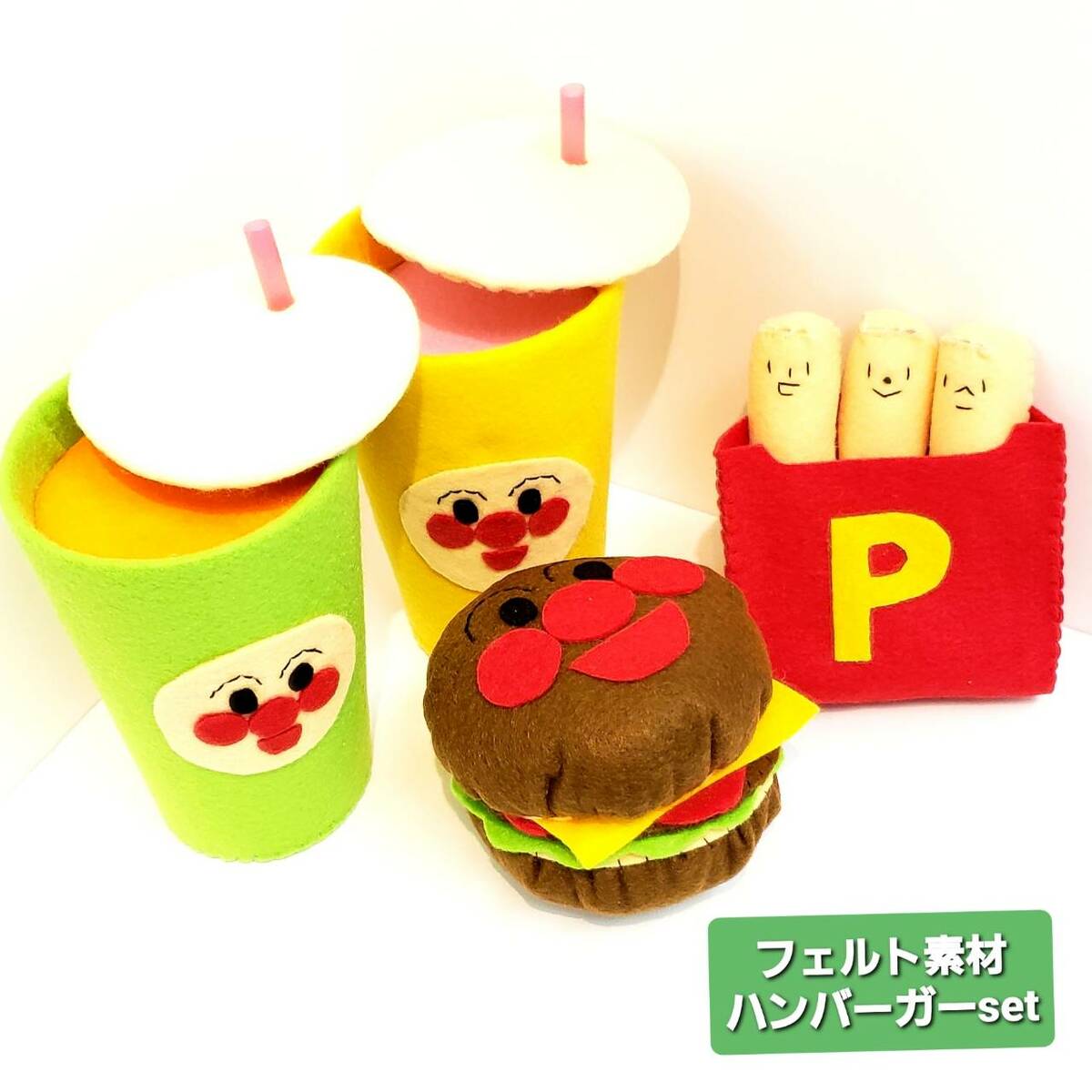 おままごとセット 安心 安全 フェルト お祝い キッズ 子ども 子供 イベント 誕生日 お子様 お子様ランチ おうち時間 ままごと 親子 クリスマス お母さん ママ 出産 出産祝い ぬいぐるみ 指人形 ソネトモ どんぐりハウス ハンバーガー ハンドメイド