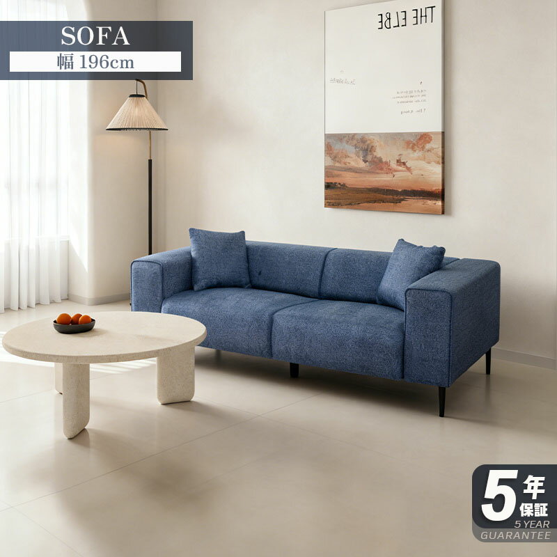 ソファ ソファー 幅196cm 3人掛け クッション付き 北欧 ファブリック 布 ブルーグレー 脚付き スチール