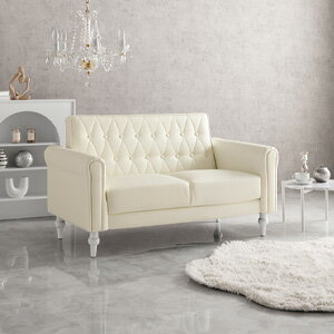 エレガント ソファ 2人掛け Lyra ライラ2P エレガント 2人掛けソファ Lyra 上品さと可愛らしさを掛け合わせた2人掛けソファ。背面のクロスボタンステッチや、コロンと丸い肘掛けなど、こだわったデザインが魅力的です。脚を外して、フロアソファとしてもお使い頂けます。弾力のある座り心地で、程よい硬さで優しく体を包み込みます。工具不要で簡単設置でき、すぐに使えます。カラーは、PVC生地にホワイト脚をあわせたエレガントなパールホワイトと、ファブリックの織り生地に木脚のナチュラルな雰囲気のアイボリーの2タイプからお選び頂けます。お部屋のアクセントにもなる上品なデザインソファです。こちらは、二人掛けソファです。 上品でクラシカルなデザインソファです! エレガント ソファ 2人掛け Lyra ライラ2P の詳細 商品名 エレガント ソファ 2人掛け Lyra ライラ2P サイズ(約) 幅122×奥行63×高さ71/57.5×座面高39/25.5cm 重量(約) 24kg 素材 構造部材:天然木 張地:(アイボリー)ポリエステル、(パールホワイト)合成皮革 仕様 組立式 メーカー 萩原株式会社 区分 ソファ 生産国 中国