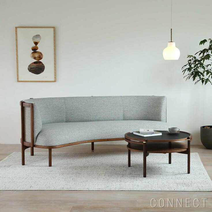 CARL HANSEN & SON (カール・ハンセン&サン) RF1903 SIDEWAYS SOFA(サイドウェイ・ソファ) / ウォルナット材・オイル仕上げ / Hallingdal 116(ハリンダル) / 2人掛け RF1903 SIDEWAYS SOFA(サイドウェイ・ソファ)を構成するのは、曲げ木加工の背板と丸みをおびたフォルムの二人掛けのシート。相手と斜めに対面するような形状が会話を弾ませます。開放的で低めの背を構築しているのは、無垢の木材とペーパーコード。ソファをより軽快なものにしています。そして背と座に施された張り加工が座り心地の良さを創り出しています。 こちらのモデルには、右バージョンと左バージョンがあります。 こちらの商品は左バージョンです。 材質 ウォルナット材背面:ペーパーコード 仕上げ オイル仕上げ テキスタイル CARL HANSEN & SON Fabric Collection Fabric group3:Hallingdal 116 (ニューウール70%、ヴィスコース30%) 耐久性:100,000Martindale サイズ W1970×D1040×H740(約mm) SH410(約mm) デザイナー RIKKE FROST(リッケ・フロスト) ブランド CARL HANSEN & SON (カール・ハンセン&サン)/デンマーク Item No. RF1903 備考 インテリア/ソファ【Made in Denmark】 ※こちらの商品は木箱梱包にてお届けいたします。 ※大型商品の為ラッピング出来ません。 ※当店はCARL HANSEN & SON社のオフィシャル・パートナーショップです。万一、商品に不具合などあった場合のアフターサービスはもちろん、ペーパーコード張替えなどのリペアも承っておりますのでお気軽にお問い合わせ下さいませ。 ※こちらのモデルには、右バージョンと左バージョンがあります。※こちらの商品は左バージョンです。心地よい会話が生まれる、二人掛けソファ RF1903 | サイドウェイ・ソファ 柔らかな曲線が、人と人をつなぐ|サイドウェイシリーズ デンマークのデザイナー、リッケ・フロストによるサイドウェイシリーズは、 ソファ、フットスツール、ラウンジチェア、コーヒーテーブルの4アイテムで構成されたラウンジコレクションです。 シリーズの特徴は、円をモチーフにした柔らかな曲線。 家具を中心に、自然な会話や居心地の良さを生み出す――サイドウェイシリーズは、形そのものがコミュニケーションを誘う、北欧デザインの新しい提案です。 シリーズの象徴、サイドウェイ・ソファ シリーズのコンセプトを最も象徴するのが、「サイドウェイ・ソファ」 ソファの描く、アシンメトリーなフォルムは、座る人をやさしく包み込み、 横並びに座っても自然と視線が交わり、心地よい会話が始まる。 まるで、会話そのものをデザインしたかのようなフォルムが、 空間に穏やかなつながりをもたらします。 次世代北欧モダンの誕生秘話-テーマと向き合い生まれた一脚 サイドウェイソファの原型は、デンマークの国営放送DRで放送された家具デザインを競うリアリティ番組 「Danmarks næste klassiker(次世代のデニッシュ・クラシック)」に参加したリッケ・フロストが 番組内で製作したものです。 与えられたテーマは、「二人掛けであること。うたたねができること。」 リッケ・フロストは、コミュニケーションをデジタル機器に頼る機会が増えた現代において、 「あえて向かい合い、自然に会話が生まれるような家具」をつくりたいと考えました。 横に並んで座っても、ほどよく視線が交わる。 自然と会話が始まり、弾む。 ――そんな時間を形にするために生まれたのが、アシンメトリーなカーブ。 ひとりでくつろぐときも、二人で語らうときも、心地よく過ごせるよう、人のふるまいを観察しながら導きだされたデザインです。 番組内で最優秀賞を受賞したこのデザインはその後、カール・ハンセン&サンとの協働によって製品化されます。 こうして、伝統と新しい感性が出会い、 次世代の北欧モダンを象徴する一脚、RF1903|サイドウェイ・ソファが誕生しました。 選ばれる理由 -唯一無二の曲線がつくる、北欧モダンの新しい形 サイドウェイ・ソファを目にした瞬間、まるで「ようこそ、どうぞ座って」と語りかけられているような親しみを感じます。 その理由を、順に紐解いていきましょう。 会話が生まれるフォルム 円形をモチーフとした、アシンメトリーなフォルムは、横に並んで座っても、自然に視線が交わるような設計。 真っすぐに向き合うよりも、リラックスした空気の中で、穏やかな会話が生まれます。 人に寄り添う、自由なくつろぎ 左右で異なる座面の奥行きにより、体格や姿勢に合わせ、思い思いのくつろぎ方が可能に。 軽く腰掛けたり、背にもたれて脚を伸ばしたり。 「自分だけのくつろぎ方」を見つけられます。 さらに、座面のカーブは左右どちら側にするかを選ぶことも可能です。 片側のアームが途切れていることで、背が高い人でも寝ころんだ時に足をのばせる自由さも。 外からの音や視線といった刺激をやわらげ、そっと守ってくれるような「囲われ感」。 その安心感が、うたた寝のひとときをいっそう心地よいものにしてくれます。 360° どこから見ても、美しい佇まい。 カール・ハンセン&サン
