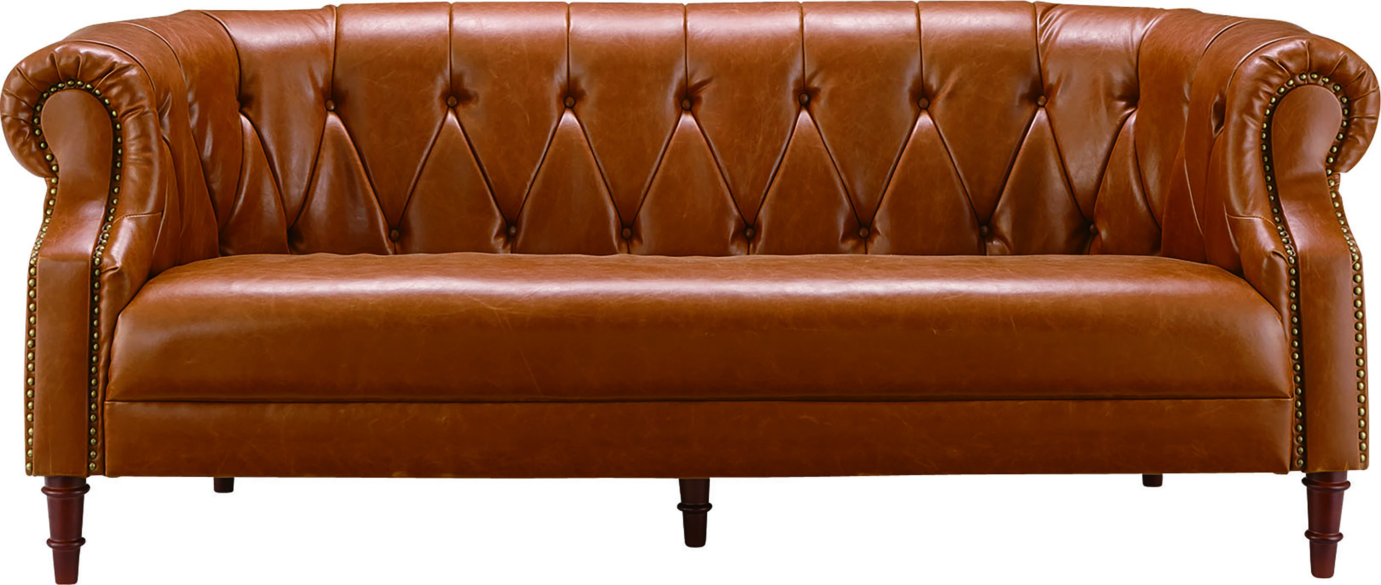 東谷 ソファ クイーンズ 3人掛 W187×D87×H72×SH40 ブラウン GS-241LBR 4985155165889 3人掛け ソフトレザー 三人用 スタッズ ビス 曲線 合皮 包み込 弾力 クラシカル ビンテージ調 木 北欧 モダン ナチュラル 木フレーム ポケットコイル ウィービングベルト ソフトレザー