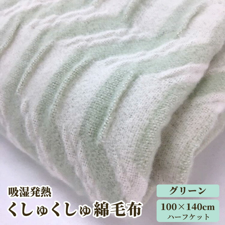 【ふるさと納税】吸湿発熱 くしゅくしゅ 綿毛布 100×140cm グリーン ハーフケット|新開発 暖か 空気層 やわらか 肌触り 綿100% ボリューム 気持いい 敬老の日 父の日 母の日 プレゼント ギフト 誕生日 クリスマス 新生活 [0686]