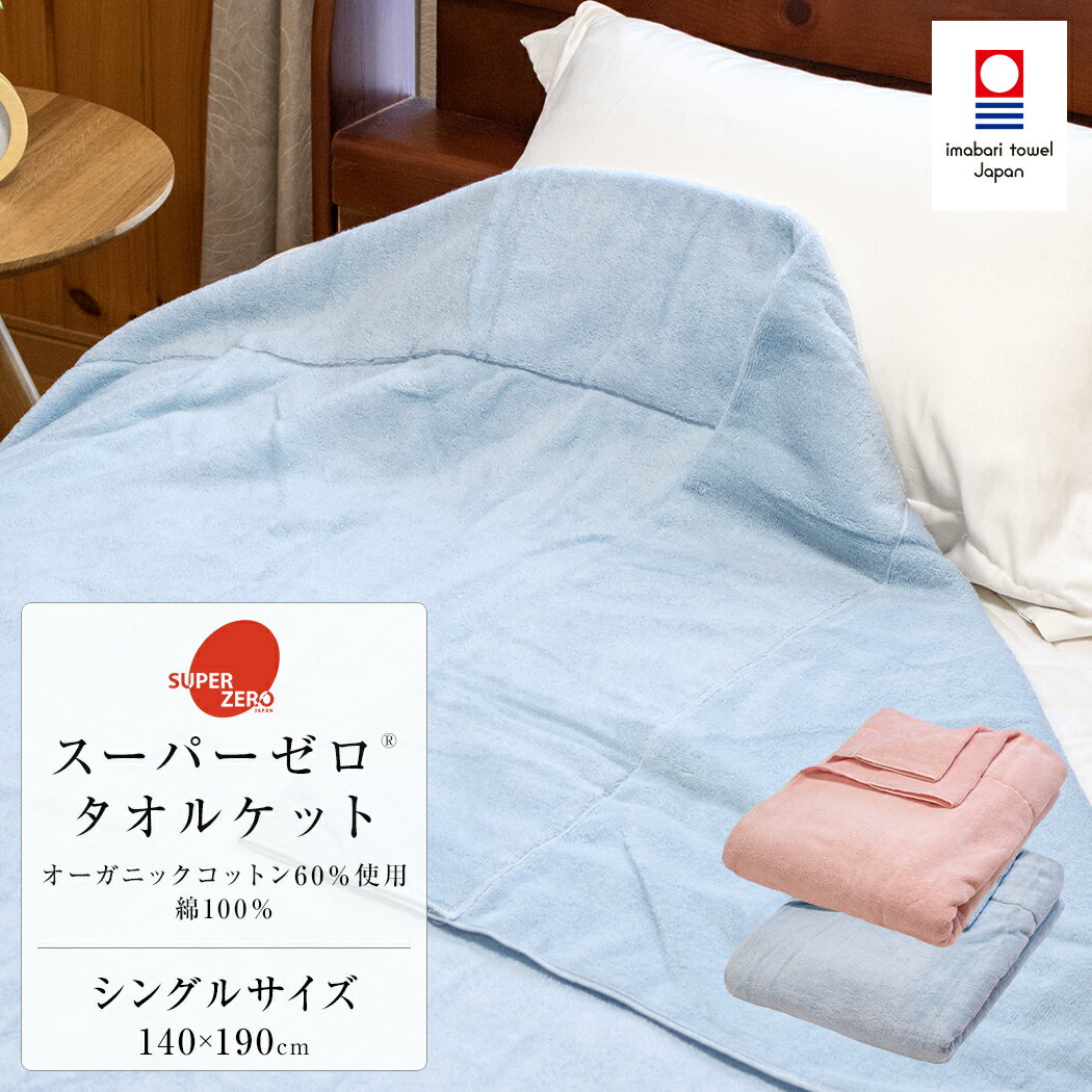 今治産 スーパーゼロ タオルケット オーガニックコットン使用 綿100% シングル 140x190cm 家庭で洗える ブルー ピンク 今治タオル SUPERZERO 抜群の吸水性 速乾性 ふっくら感が長続き 日本製