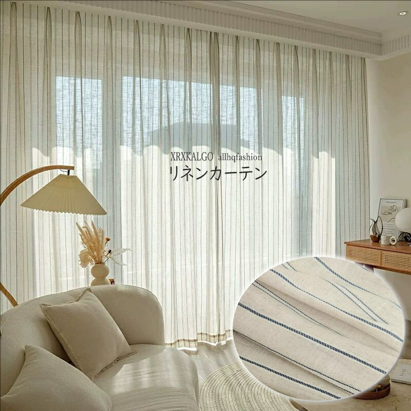 【当店オススメ】レースカーテン リネンカーテン カーテン 幅80~幅350cm 丈65~255cm 1枚 半遮光 ストライプ オーダーカーテン 通気性 自然風合い 高級感 柔らかな光 耐久性 北欧風 腰窓 インテリア 丈直し 風通し ナチュラル 間仕切り