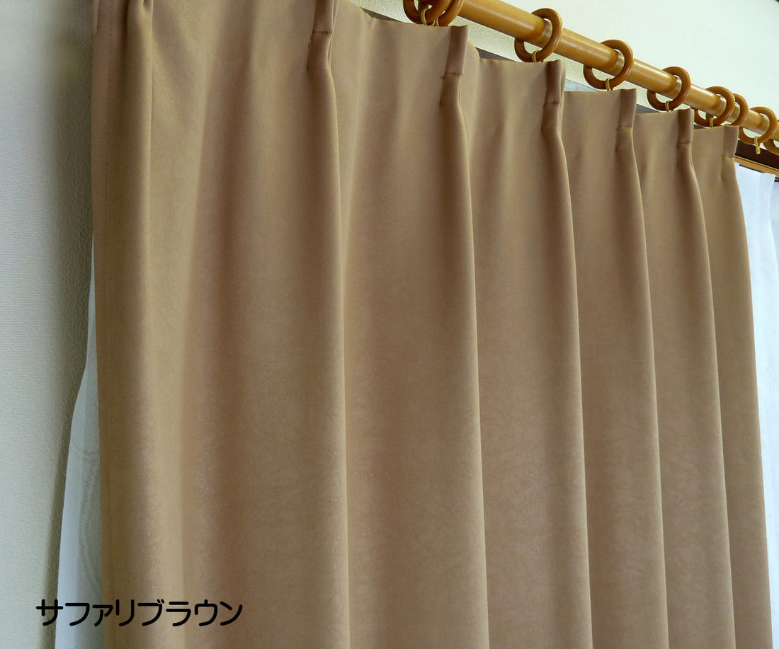 商品説明 商品内容 完全遮光・断熱・冷気遮断保温・遮音にすぐれたマルチ機能のパーフェクトな機能のドレープカーテン 【スィート】 ・ドレープカーテン2枚組または1枚 ・Bタイプスライドフック付 14本(1枚あたり7本) 200cm幅の場合13本 (フックは本体に取付済みですので、すぐにレールに掛ける事が出来ます。) ・共生地タッセル(カーテン留め)製品1枚につき1本付き サイズ ・幅100cm×丈(高さ)215cm(2枚組) ・幅100cm×丈(高さ)230cm(2枚組) ・幅200cm×丈(高さ)230cm(1枚) 組成 ・ポリエステル100% ※生地裏面:ポリウレタンラミネート加工 色 ・ベージュ ・グリーン 商品説明 中間部分に黒色糸を織り込んで表面、裏面から高密度の特殊ポリエステル糸でサンドした高性能の1級遮光の生地に、さらに裏面に遮音材を含んだラミネート加工をすることで、1級遮光→完全遮光へと機能アップ! さらに遮音材入りのラミネート加工により、雨合羽のように表面と裏面の空気の行き来が無くなることで、これまでの1級遮光カーテンに比べて、高音域の遮音、断熱機能・冷気遮断性においても機能性がアップしており、ドレープカーテンに求められる機能を贅沢に追求した、1年間通して快適に使用していただけるカーテンです。 ただし、機能性をアップする為に特殊ラミネート加工をしている関係上、お買い上げいただいてから馴染むまでの間、しばらくはゴワゴワ感が残ります。このゴワゴワ感が気になるようであれば、発送前に形態安定加工を1点につき¥800で対応させていただきますのでご要望があればご注文の際にお申し付けください。 なお、形態安定加工を行う場合は、通常発送日から1〜2日間かかりますので、ご了承願います。 生地の裏面にポリウレタンラミネート加工(薄い皮膜を何層にも張り付ける加工)をしています。 この生地は4層構造(生地本体+遮光層+遮音層+ベージュ色の化粧層)となっています。 通常の生地と比較すると多少ごわつき感はありますが、それを補って余りある機能(遮音※・完全遮光・断熱・冷気遮断等)が魅力のドレープカーテンです。 ※遮音効果は低音域よりも高音域(救急車のサイレン等)に効果が高いです。 お探しのサイズがあれば大変お買い得な既製ドレープカーテン。 いずれの商品も安心安全の日本製で各種機能性も充実の大変お得な商品です。 規格サイズになりますので、限定されたサイズではありますが、定価からの大幅値引、激安大特価でお届けします。 数量限定のため、お早めにお買い求めください!◆カーテンのサイズの測り方はカーテンのサイズの決め方(窓の採寸方法)をご確認下さい!! 中間部分に黒色糸を織り込んで表面、裏面から高密度の特殊ポリエステル糸でサンドした高性能の1級遮光の生地に、さらに裏面に遮音材を含んだラミネート加工をすることで、1級遮光→完全遮光へと機能アップ! さらに遮音材入りのラミネート加工により、雨合羽のように表面と裏面の空気の行き来が無くなることで、これまでの1級遮光カーテンに比べて、高音域の遮音、断熱機能・冷気遮断性においても機能性がアップしており、ドレープカーテンに求められる機能を贅沢に追求した、1年間通して快適に使用していただけるカーテンです。 ただし、機能性をアップする為に特殊ラミネート加工をしている関係上、お買い上げいただいてから馴染むまでの間、しばらくはゴワゴワ感が残ります。このゴワゴワ感が気になるようであれば、発送前に形態安定加工を1点につき¥800で対応させていただきますのでご要望があればご注文の際にお申し付けください。 なお、形態安定加工を行う場合は、通常発送日から1〜2日間かかりますので、ご了承願います。 生地の裏面にポリウレタンラミネート加工(薄い皮膜を何層にも張り付ける加工)をしています。 この生地は4層構造(生地本体+遮光層+遮音層+ベージュ色の化粧層)となっています。 通常の生地と比較すると多少ごわつき感はありますが、それを補って余りある機能(遮音※・完全遮光・断熱・冷気遮断等)が魅力のドレープカーテンです。 ※遮音効果は低音域よりも高音域(救急車のサイレン等)に効果が高いです。 お探しのサイズがあれば大変お買い得な既製ドレープカーテン。 いずれの商品も安心安全の日本製で各種機能性も充実の大変お得な商品です。 規格サイズになりますので、限定されたサイズではありますが、定価からの大幅値引、激安大特価でお届けします。 数量限定のため、お早めにお買い求めください!