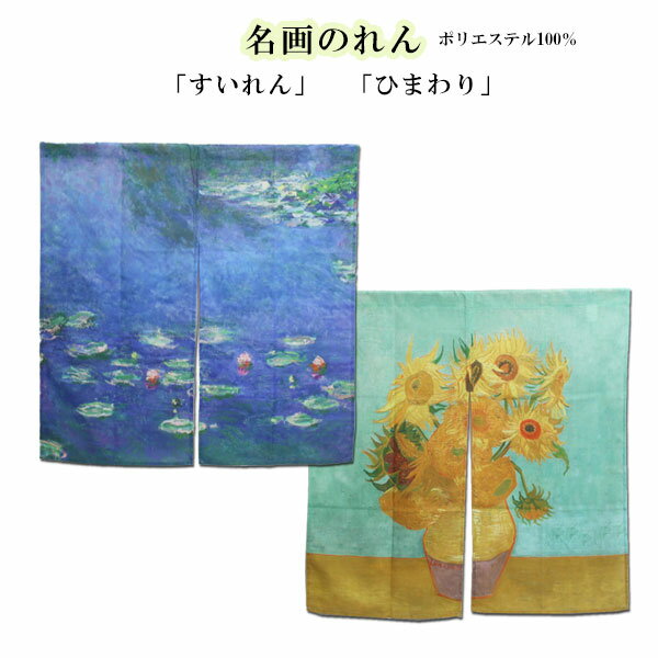【名画のれん】すいれん・ひまわり暖簾/2柄ポリエステル100%/約90cm×約90cm【メール便OK】key-11