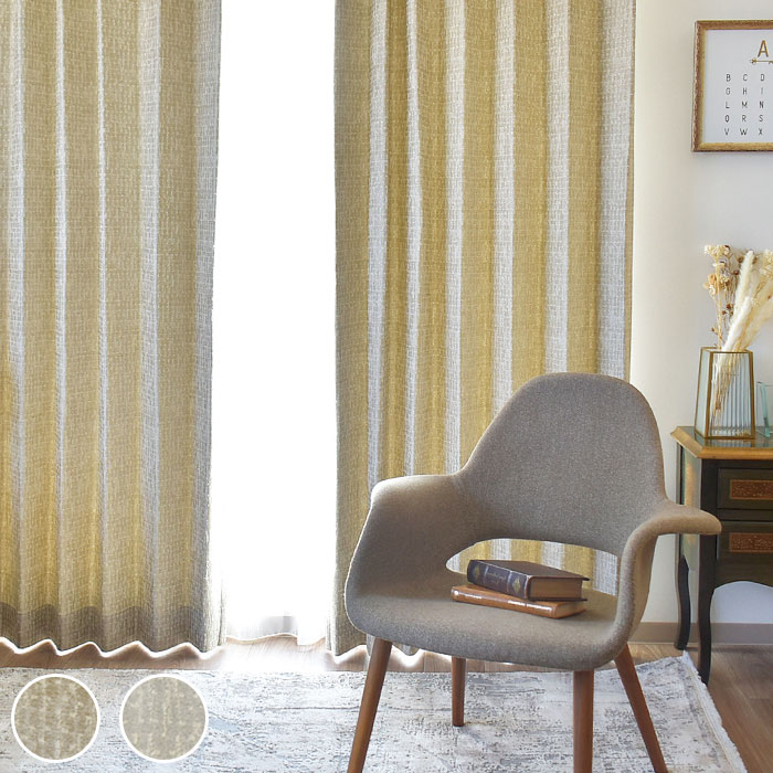 オリーブ アンティークストライプカーテン 天然素材混の中厚地ベースにフレンチアンティークカラーのストライプ。 ヴィンテージからインダストリアルな空間でお使いいただけます。 洗いざらしな感じでナチュラル感いっぱいのカーテンです。 ※ サンプル生地にてお確かめください ※ モニターの設定や環境により、実際の商品の色と異なって見える場合がございます。 パソコンでは分からない生地の質感や実際の色はサンプル請求にてご確認ください。 またロットによって多少色ブレが出る可能性もございますので予めご了承ください。 サンプル生地は55円(税込)【送料無料】でお届けしています。 是非ご利用くださいませ。 --商品説明------Spec---- 【 商品名 】 【カーテン】オリーブ 【 カラー 】 ブルー カーキ 欠品 ダークグレー 【 素材 】 組成/ポリエステル46% 綿34% アクリル20% リピート/タテ:0.0cm ヨコ:25.0cm 寸法変化率/ドライ タテ:-0.2% ヨコ:-0.3% 【 種類 】 ◆1.5倍ヒダ プレミアム縫製 1cmきざみ ◆フラット プレミアム縫製 1cmきざみ 【 タッセル 】 生地タッセル別売り 1本550円 【 フック 】 アジャスターフック(A・B選択可能)がついています。 丈を調整する場合はフックを移動させてください。 【 天然繊維カーテンの特徴 】 天然素材のため、種のカスやネップ(たま)、糸をつないだフシがあります。 自然素材ならではの模様としてお楽しみください。 通気性が良く、水分を吸収しやすいので生地の伸びや縮みなどがありますが、ホコリなどは付きにくく長く気持ち良くお使いいただけます。 【 お取り扱い 】 製品に添付している洗濯絵表示にそってお洗濯をお願いします。 お洗濯はドライクリーニングです。天然素材のため、水洗いをすると縮むおそれがあります。
