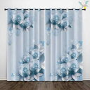 カーテン 高遮光 3D デジタルプリント ブルー ローズ 花柄 ポリエステル リビング 寝室 ドレープカーテン