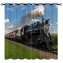 カーテン 北欧 欧米風 レトロ ヴィンテージ 機関車 汽車 3Dデジタルプリント 高遮光 間仕切り パーテーション ポリエステル リビング 寝室用 ブルー系