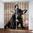 遮光 断熱 カーテン アニマル パグ&ローズ アイレット遮光カーテン 2 x 幅100 x 丈110cm 3Dデジタルプリントウィンドウカーテンリビングルームのベッドルームの保育園のために2枚のパネル