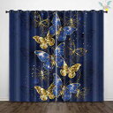 カーテン 青色 ゴールド 蝶柄 3Dデジタルプリント 高遮光 ポリエステル生地 リビング 寝室 子供部屋 ナチュラルテイスト 間仕切り