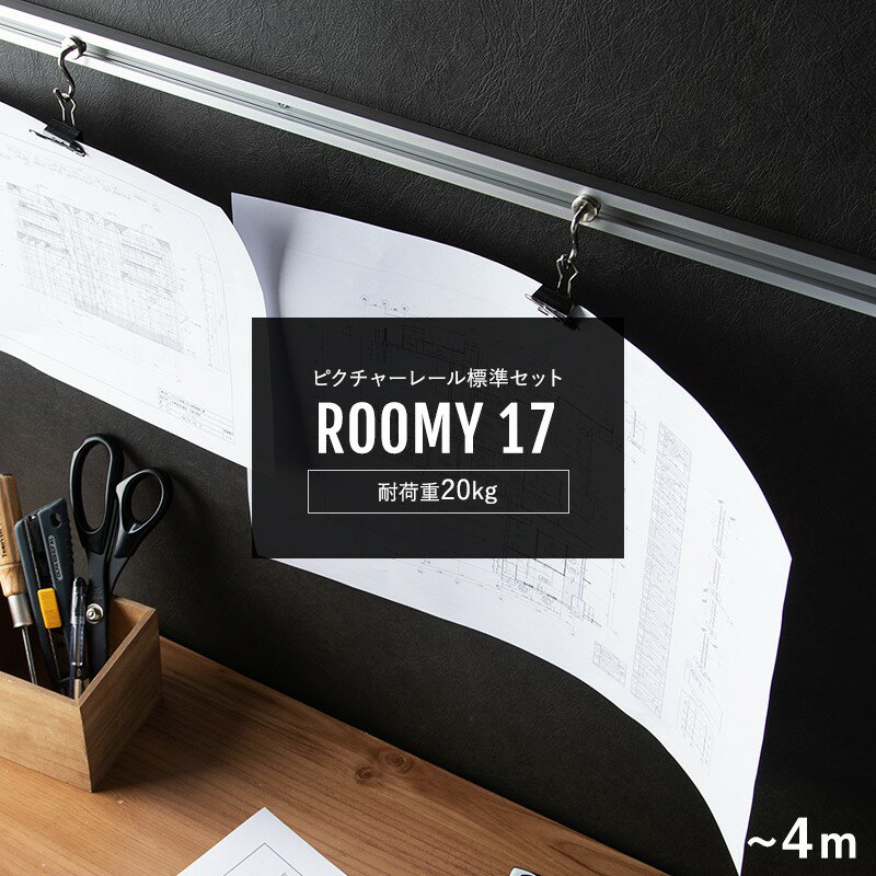 [1000円OFFクーポン配布中]ピクチャーレール セット ルーミー17 〜4m カット料込 天井付け 壁付け 写真 インテリア 展示用 パネル オシャレ スタイリッシュ 収納 かける 美術館 学校 商用 家庭用 ディスプレイ 約 JQ