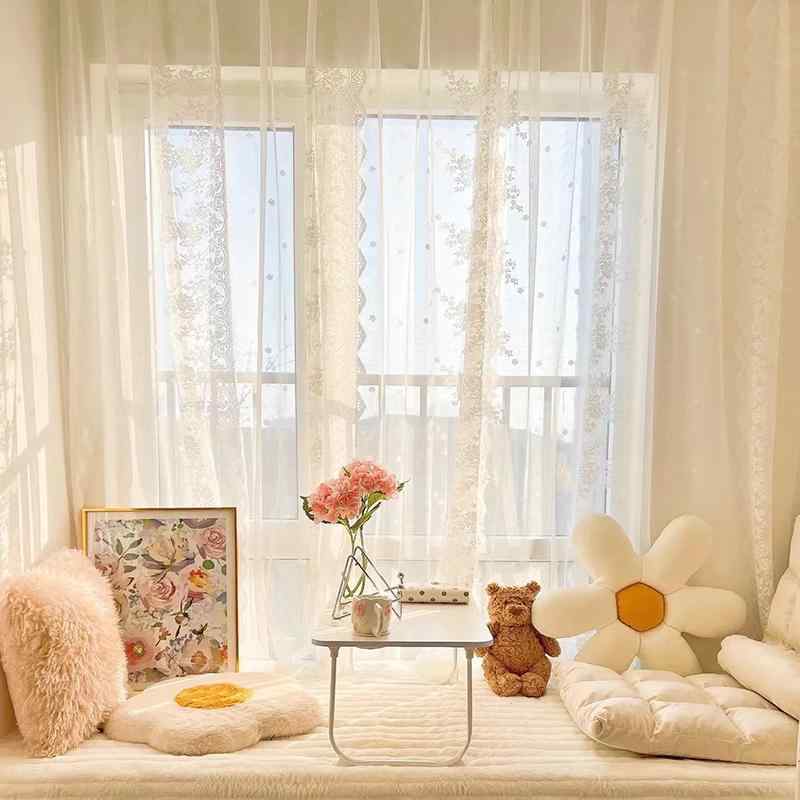 レース カーテン インテリア フランスの 田園的な ガーゼ ワンピース パンチ フリー 光 透過性 不 透過性の 花柄 カーテン レースの 窓