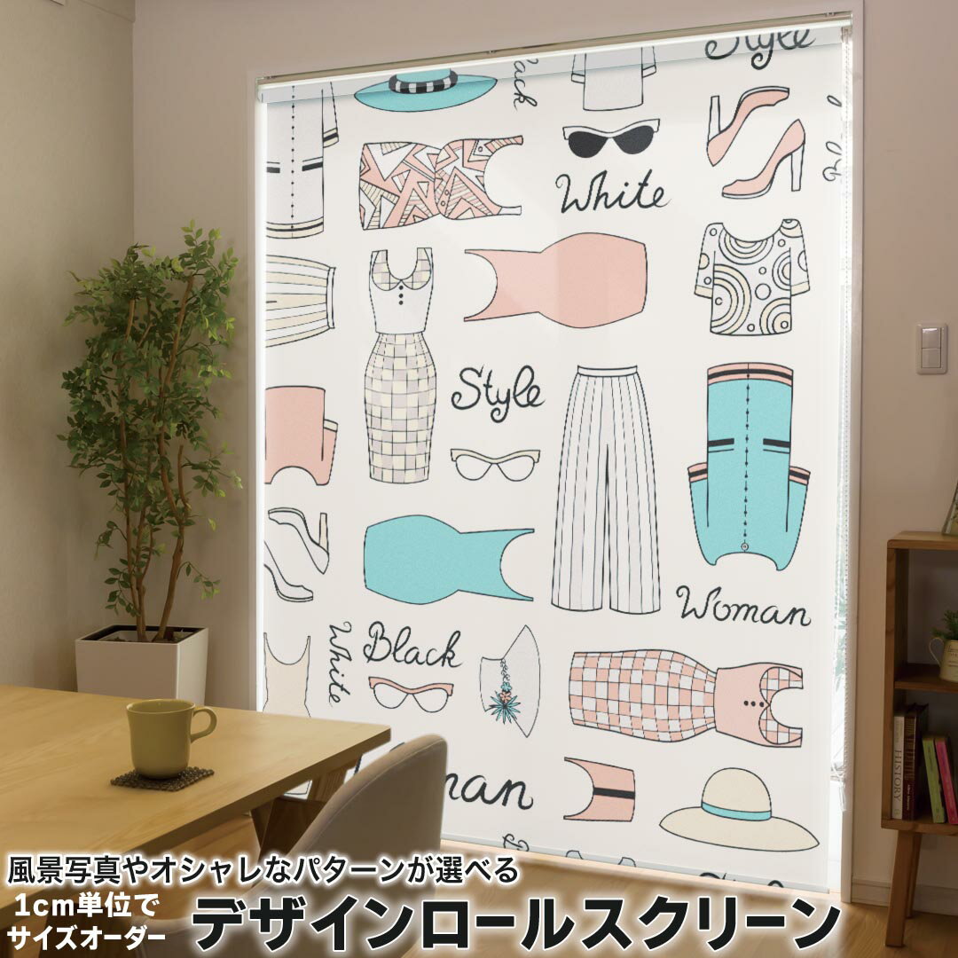 1cm単位サイズオーダー ロールスクリーン ロールカーテン オーダーメイド タチカワ 日本製 間仕切り カーテン 採光 非遮光 目隠し UVカット カーテンレール チェーン式 プル式 013721 ファッション イラスト