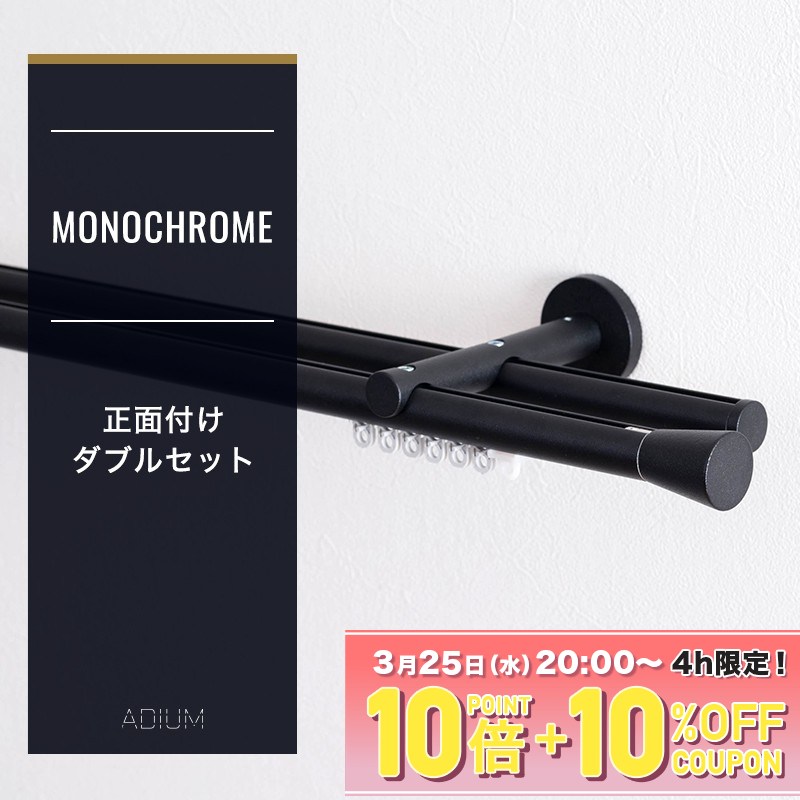 [25日限定!10%OFFクーポン×P10倍 20時〜4H限定]カーテンレール アイアンレール おしゃれ 黒 白 ブラケットスルー インランナー 正面付けダブルセット 201〜250cm アディウム ADIUM プレミアムモノクローム H-N-0