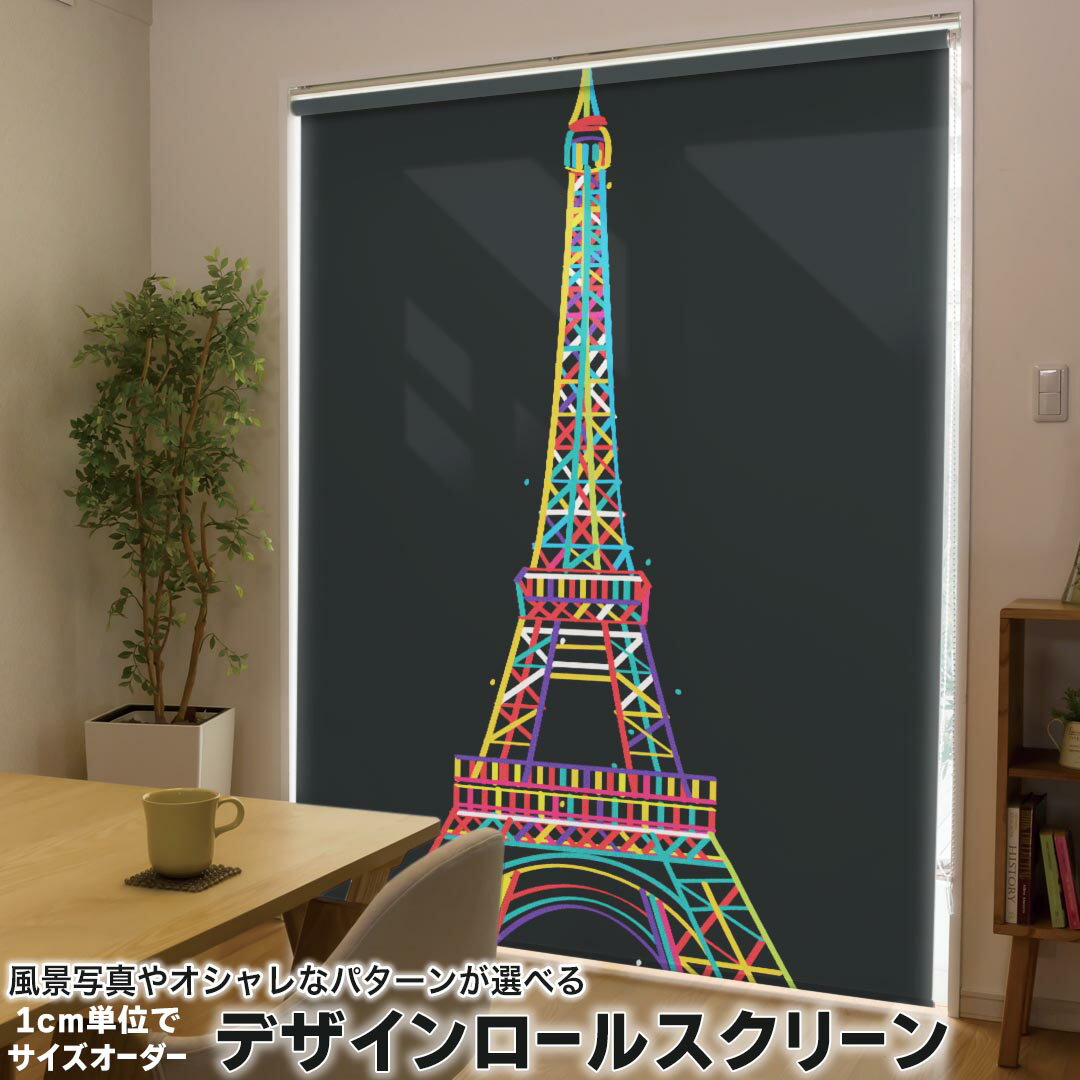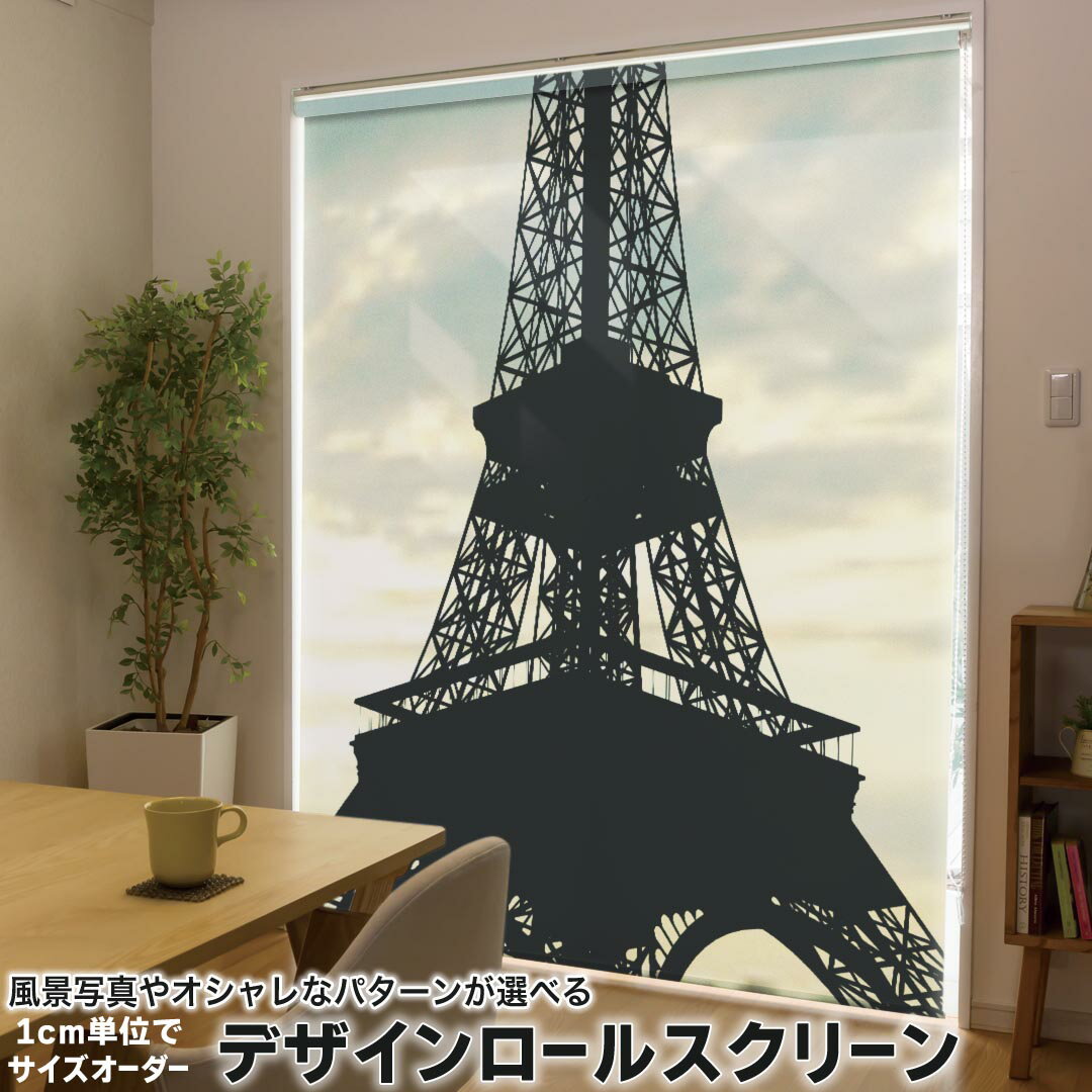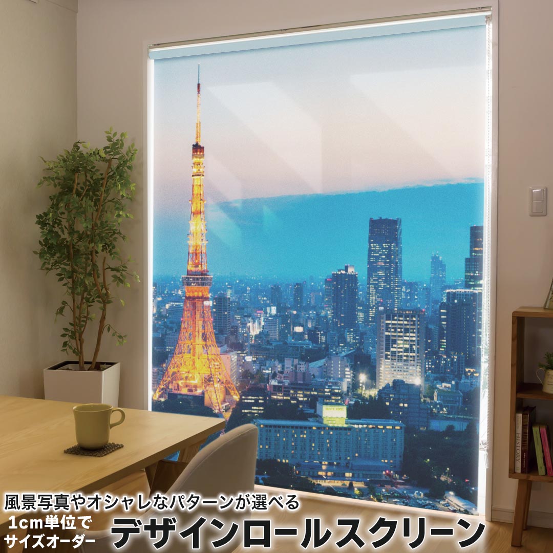 1cm単位サイズオーダー ロールスクリーン ロールカーテン オーダーメイド タチカワ 日本製 間仕切り カーテン 採光 非遮光 目隠し UVカット カーテンレール チェーン式 プル式 014734 東京タワー 写真