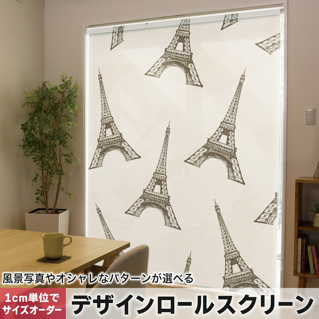 1cm単位サイズオーダー ロールスクリーン ロールカーテン オーダーメイド タチカワ 日本製 間仕切り カーテン 採光 非遮光 目隠し UVカット カーテンレール チェーン式 プル式 010288 風景 タワー 模様