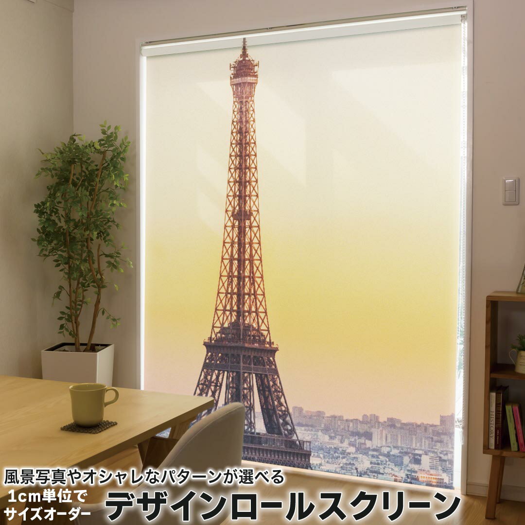 1cm単位サイズオーダー ロールスクリーン ロールカーテン オーダーメイド タチカワ 日本製 間仕切り カーテン 採光 非遮光 目隠し UVカット カーテンレール チェーン式 プル式 010517 写真 タワー 夕焼け