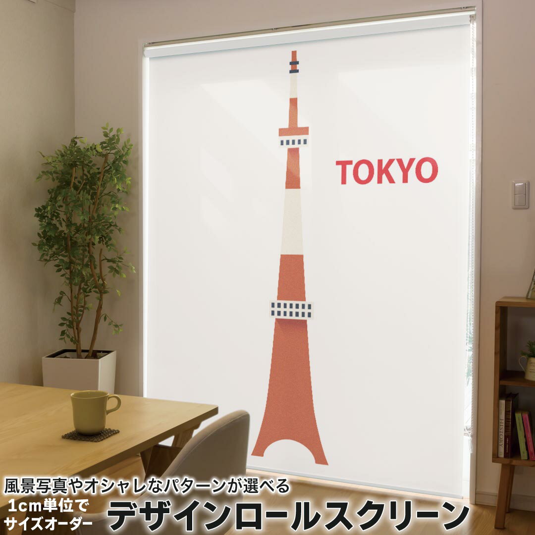 1cm単位サイズオーダー ロールスクリーン ロールカーテン オーダーメイド タチカワ 日本製 間仕切り カーテン 採光 非遮光 目隠し UVカット カーテンレール チェーン式 プル式 017719 東京タワー 東京タワー toyko