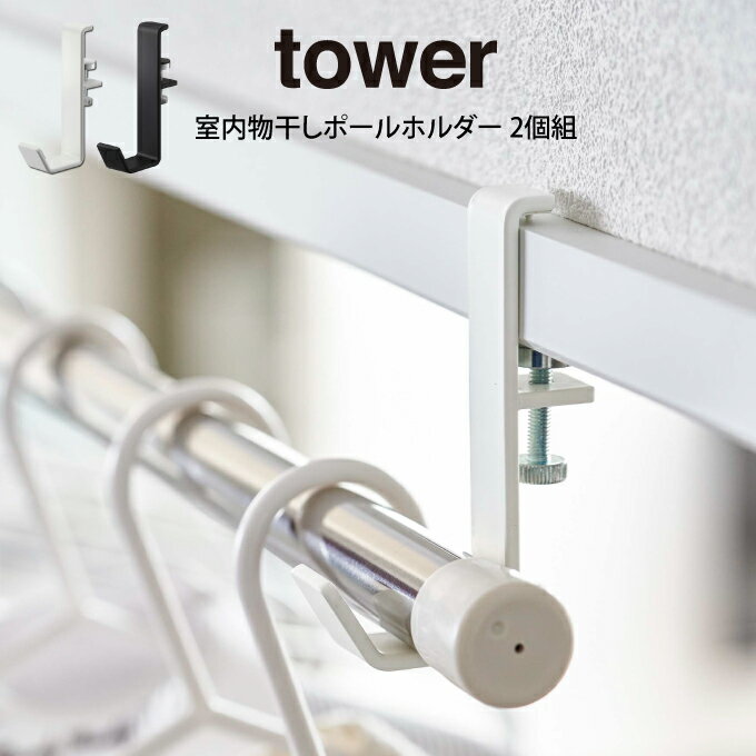 【メール便で送料無料】tower タワー 室内物干しポールホルダー 2個組 山崎実業 / おしゃれ 洗濯物干し 室内ハンガー 部屋干しグッズ ハンガーバー 省スペース 収納雑貨 北欧 インテリア雑貨