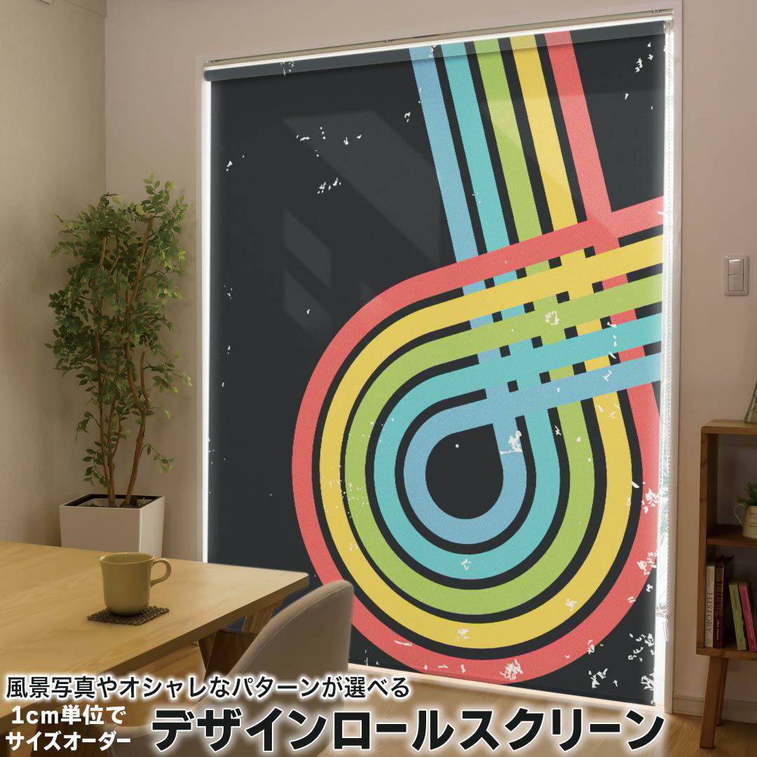 1cm単位サイズオーダー ロールスクリーン ロールカーテン オーダーメイド タチカワ 日本製 間仕切り カーテン 採光 非遮光 目隠し UVカット カーテンレール チェーン式 プル式 002338 クール 虹 カラフル ビンテージ