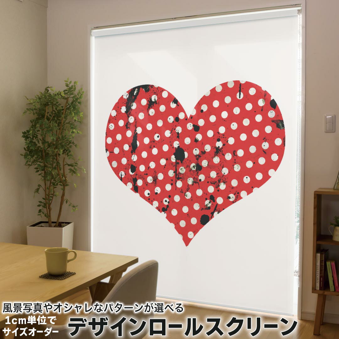 1cm単位サイズオーダー ロールスクリーン ロールカーテン オーダーメイド タチカワ 日本製 間仕切り カーテン 採光 非遮光 目隠し UVカット カーテンレール チェーン式 プル式 002360 ラブリー ハート 水玉 ビンテージ