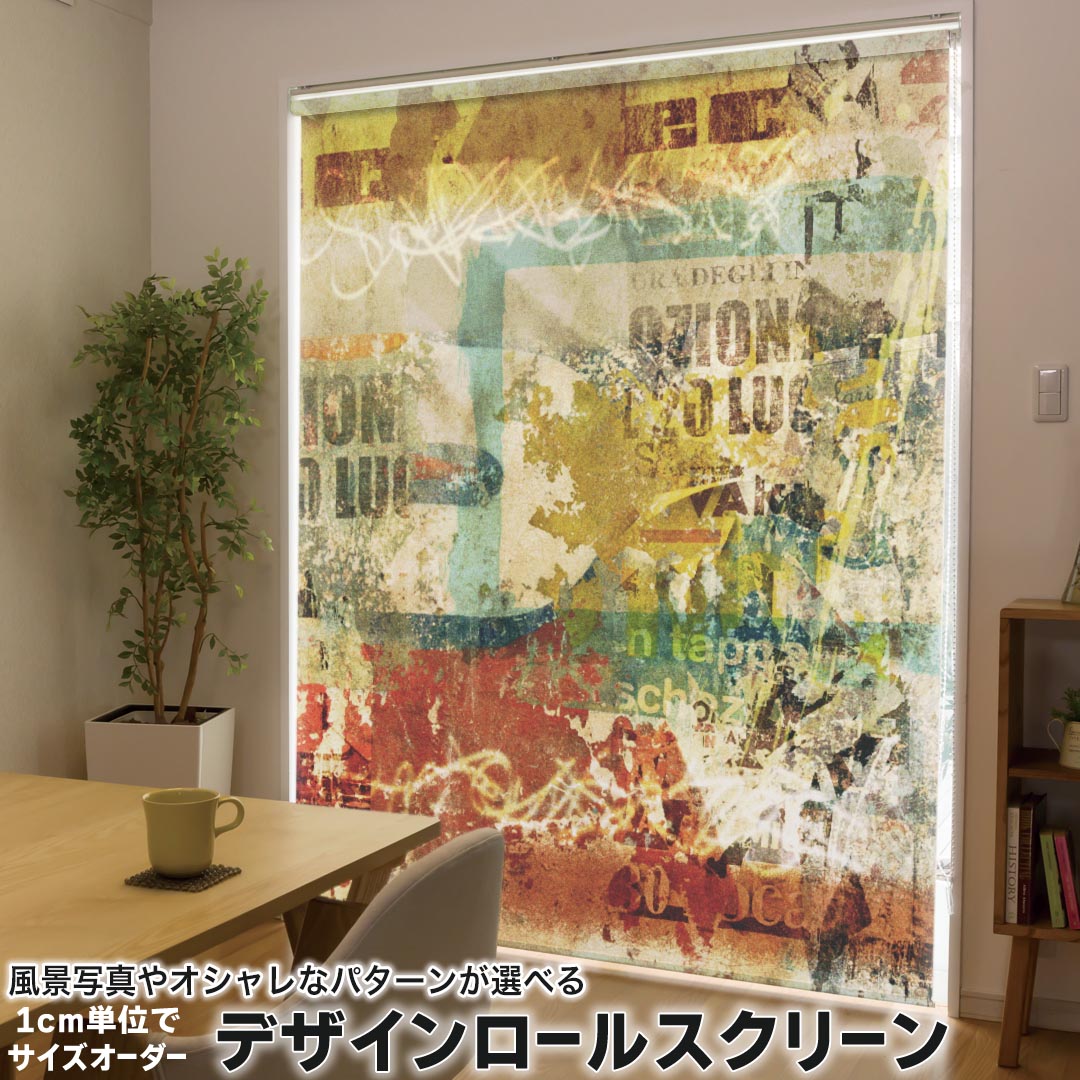 1cm単位サイズオーダー ロールスクリーン ロールカーテン オーダーメイド タチカワ 日本製 間仕切り カーテン 採光 非遮光 目隠し UVカット カーテンレール チェーン式 プル式 002488 ユニーク 英語 文字 ビンテージ