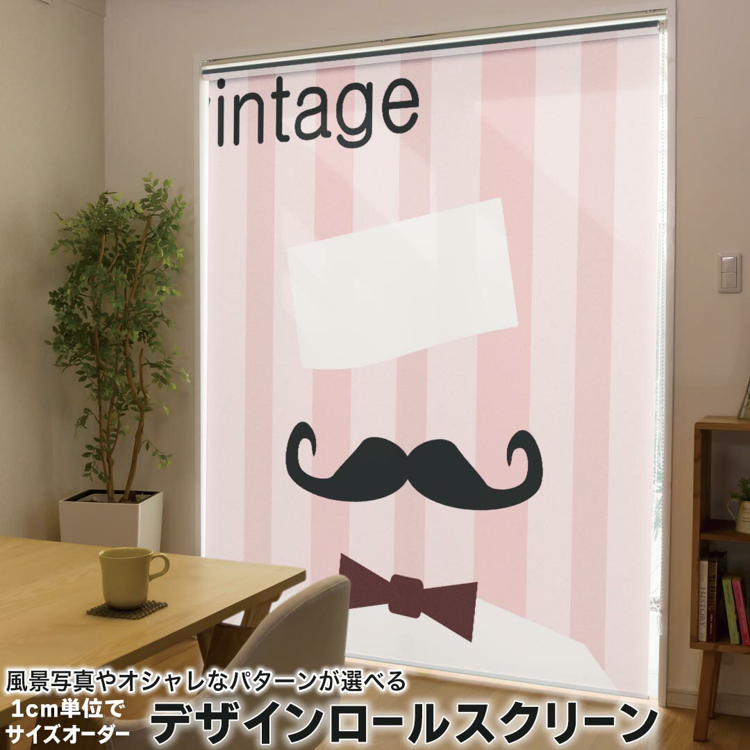 1cm単位サイズオーダー ロールスクリーン ロールカーテン オーダーメイド タチカワ 日本製 間仕切り カーテン 採光 非遮光 目隠し UVカット カーテンレール チェーン式 プル式 006346 ユニーク ヒゲ ひげ ビンテージ
