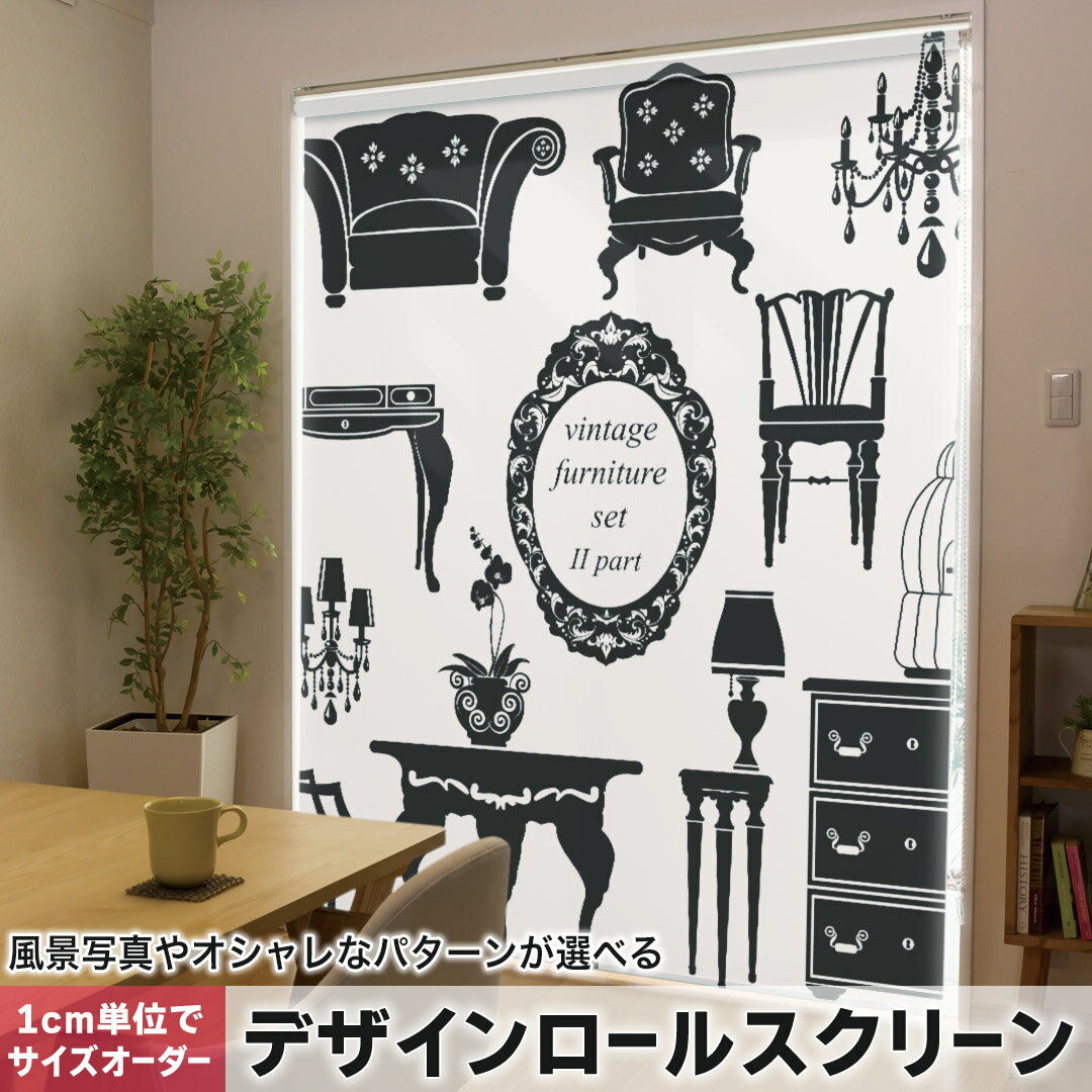 1cm単位サイズオーダー ロールスクリーン ロールカーテン オーダーメイド タチカワ 日本製 間仕切り カーテン 採光 非遮光 目隠し UVカット カーテンレール チェーン式 プル式 001019 その他 ヴィンテージ 柄