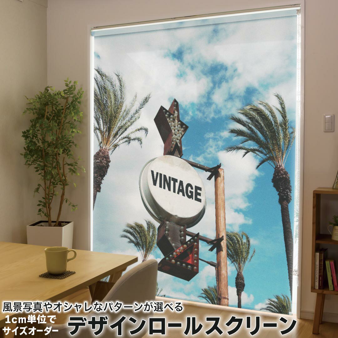 1cm単位サイズオーダー ロールスクリーン ロールカーテン オーダーメイド タチカワ 日本製 間仕切り カーテン 採光 非遮光 目隠し UVカット カーテンレール チェーン式 プル式 011196 ロサンゼルス 外国 ビンテージ