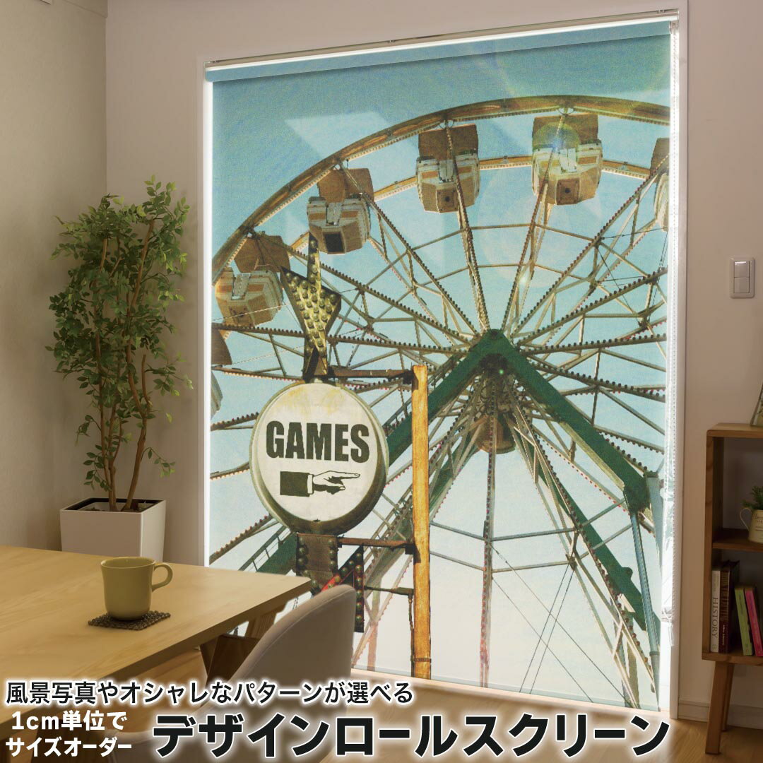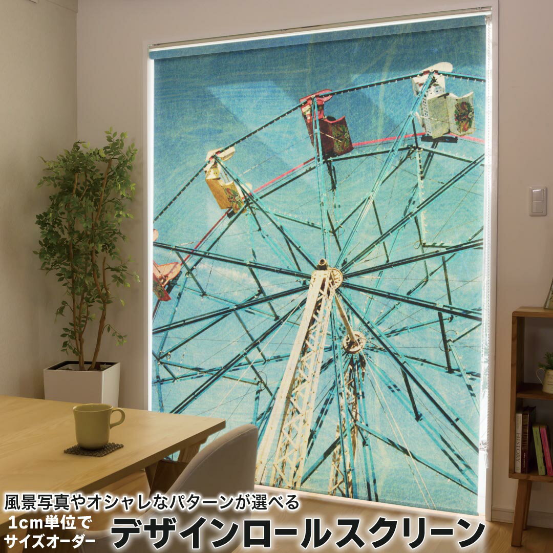 1cm単位サイズオーダー ロールスクリーン ロールカーテン オーダーメイド タチカワ 日本製 間仕切り カーテン 採光 非遮光 目隠し UVカット カーテンレール チェーン式 プル式 011172 観覧車 ビンテージ 写真