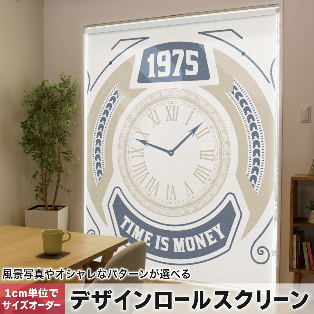 1cm単位サイズオーダー ロールスクリーン ロールカーテン オーダーメイド タチカワ 日本製 間仕切り カーテン 採光 非遮光 目隠し UVカット カーテンレール チェーン式 プル式 011227 時計 英語 ビンテージ