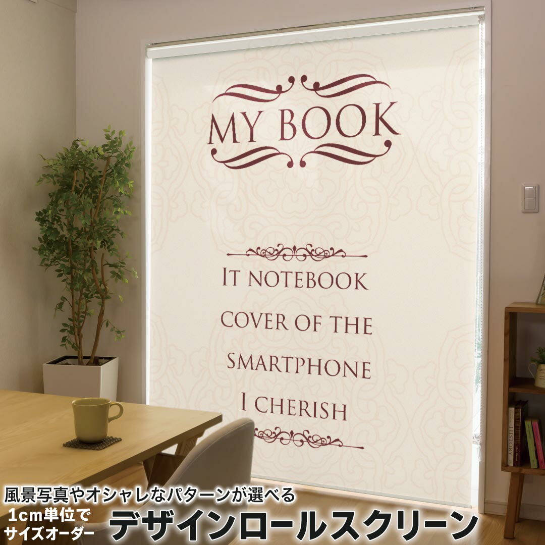 1cm単位サイズオーダー ロールスクリーン ロールカーテン オーダーメイド タチカワ 日本製 間仕切り カーテン 採光 非遮光 目隠し UVカット カーテンレール チェーン式 プル式 011342 本 英語 ビンテージ