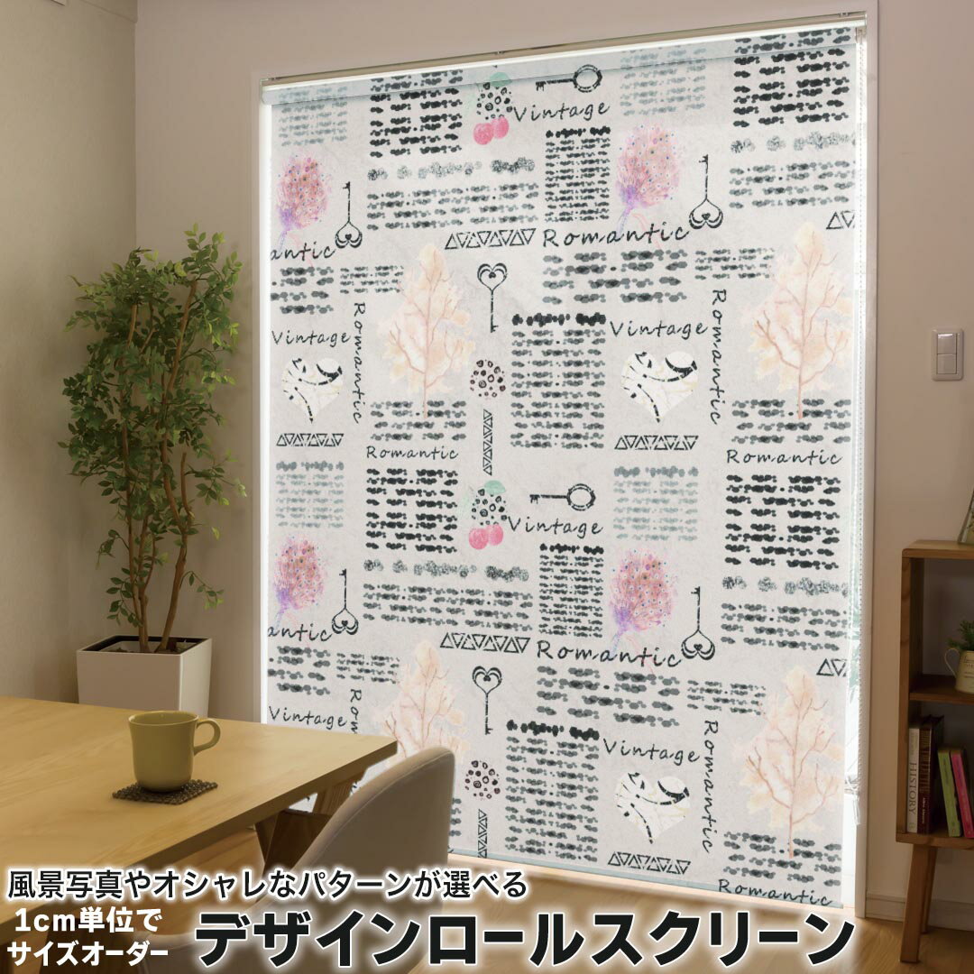 1cm単位サイズオーダー ロールスクリーン ロールカーテン オーダーメイド タチカワ 日本製 間仕切り カーテン 採光 非遮光 目隠し UVカット カーテンレール チェーン式 プル式 014548 鍵 ビンテージ ハート