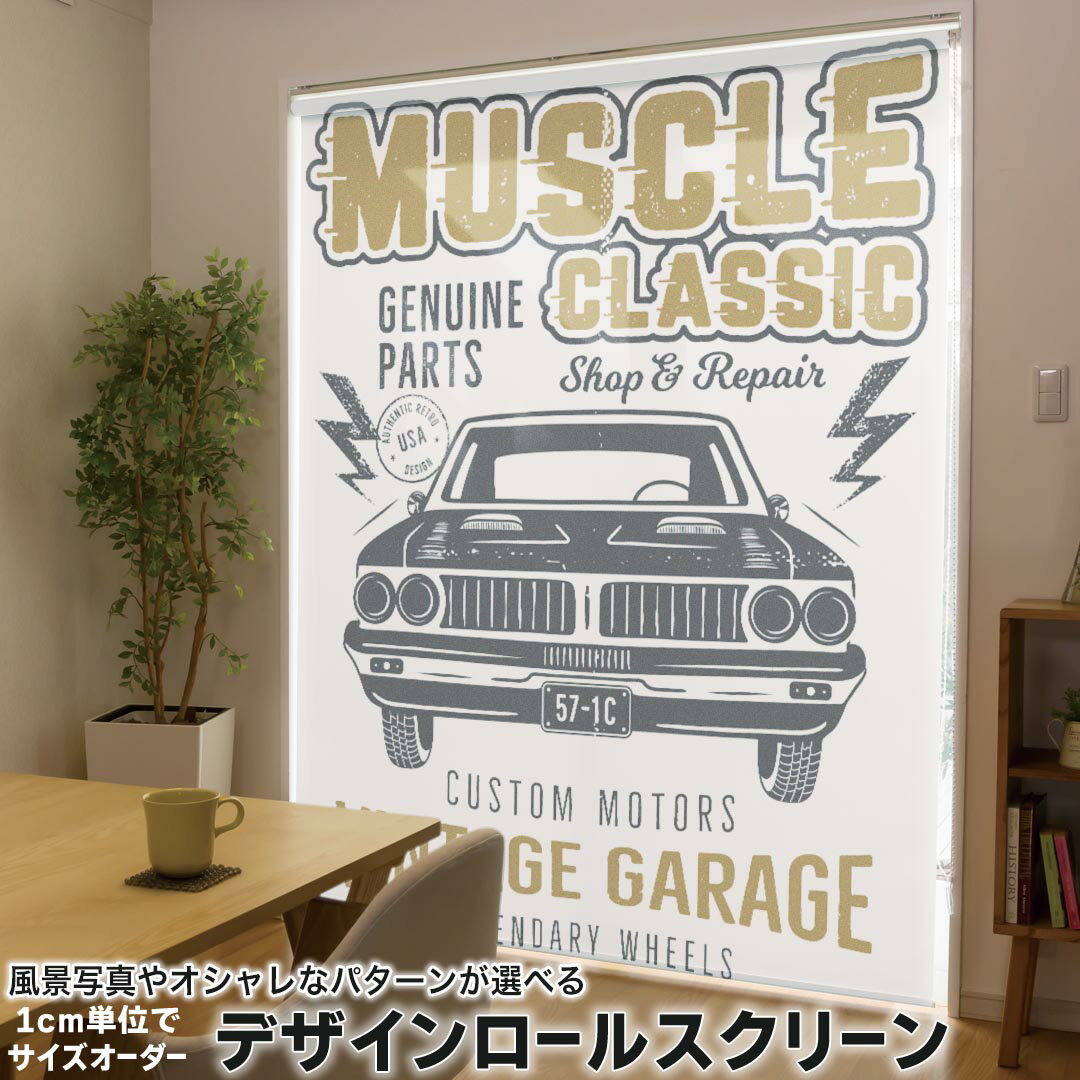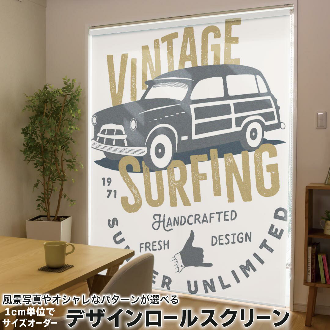 1cm単位サイズオーダー ロールスクリーン ロールカーテン オーダーメイド タチカワ 日本製 間仕切り カーテン 採光 非遮光 目隠し UVカット カーテンレール チェーン式 プル式 017531 乗り物 車 ヴィンテージ レトロ