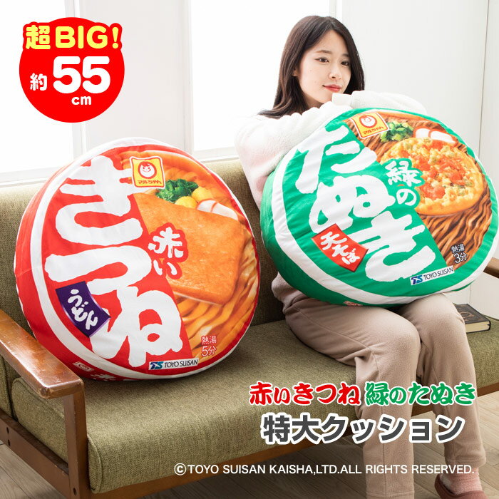 《50%OFF/P10倍 楽天スーパーSALE期間中》赤いきつね 緑のたぬき クッション 特大クッション ぬいぐるみマルちゃん フロアクッション 抱き枕 大きい 特大 おしゃれ テレワーク かわいい 丸型 クリスマス プレゼント 誕生日 おもしろ ギフト 女性