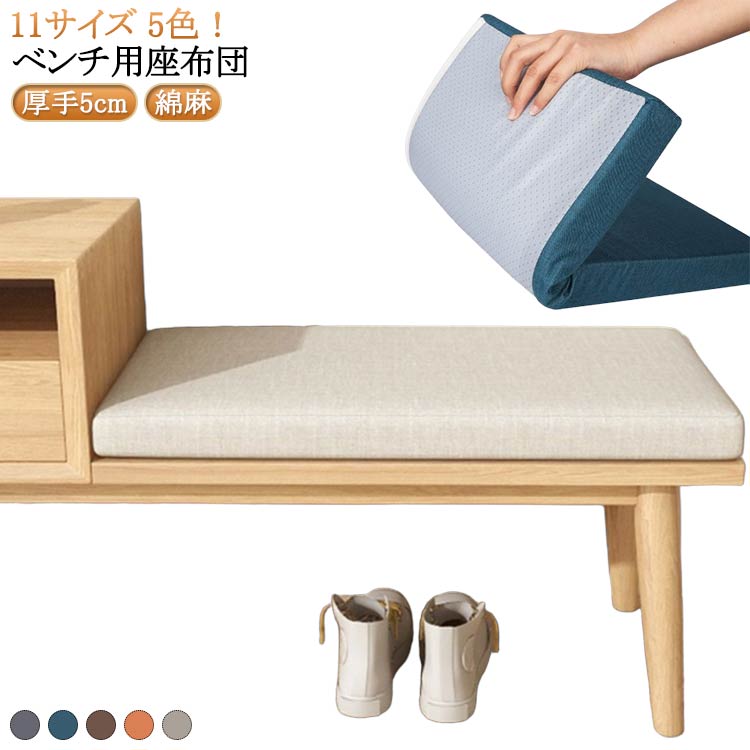 ベンチ用 厚手5cm 11サイズ 長座布団 玄関ベンチ ベンチシートクッション ロングクッション 長椅子クッション ベンチ用座布団 お尻痛くない ベンチクッション クッション 座布団 スポンジパッド 体圧分散 滑り止め 変形しにくい