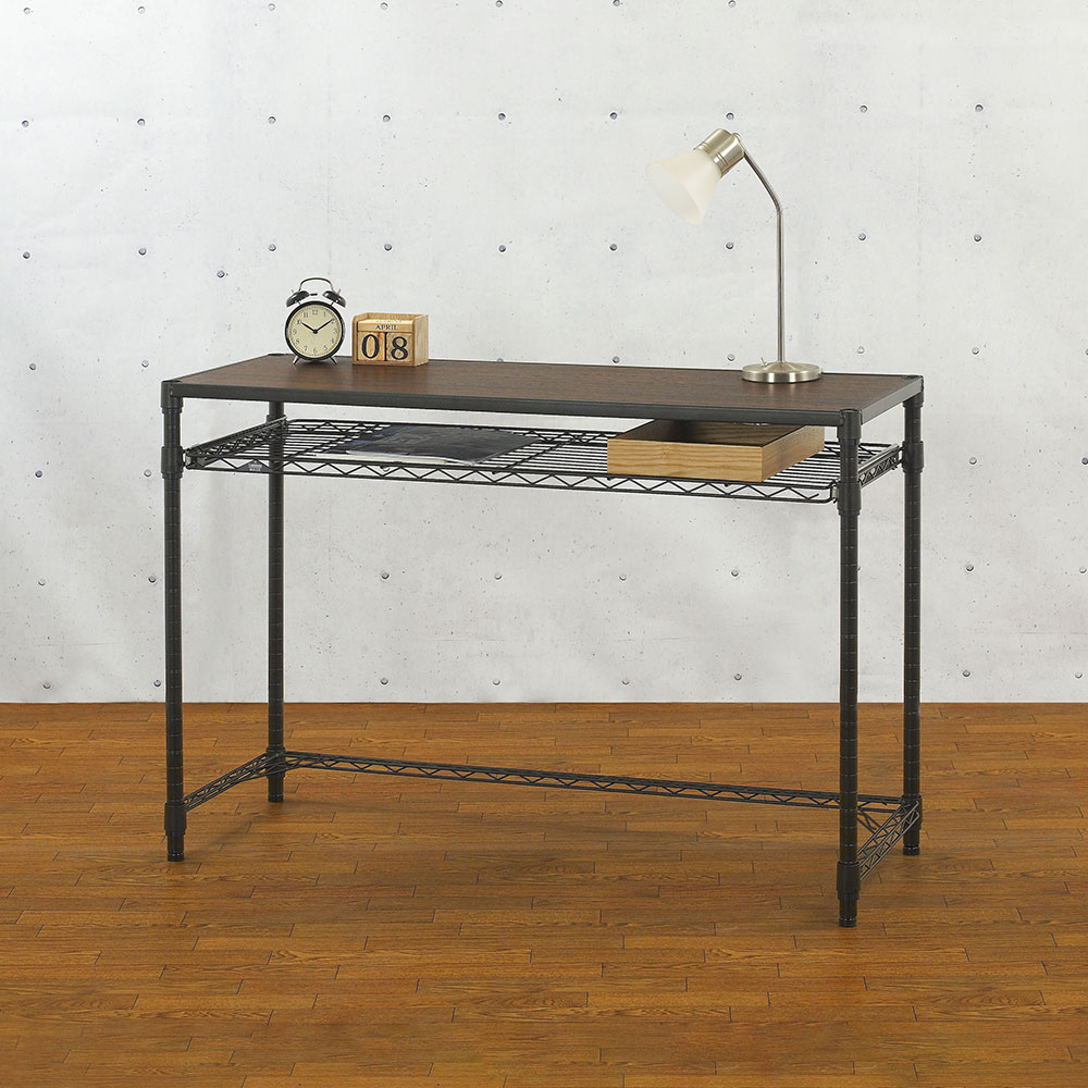 ルミナス ノワール デスク 引き出し付 幅111cm ブラック 黒 防錆 艶なし ビンテージ スリム コンパクト メタルラック スチールラック NO1175-HD