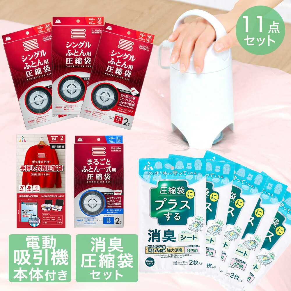 【 エントリーでポイント最大19倍 12/25(木)00:00〜12/26(金)01:59まで 】 圧縮袋 お買い得 11点 セット | 消臭シート 圧縮袋用 収納 布団圧縮袋 布団 圧縮袋 布団圧縮 圧縮 吸引ポンプ 圧縮収納 布団圧縮機 圧縮 布団収納 収納 衣類 ダニ ダニ退治 ダニ対策 ダニ駆