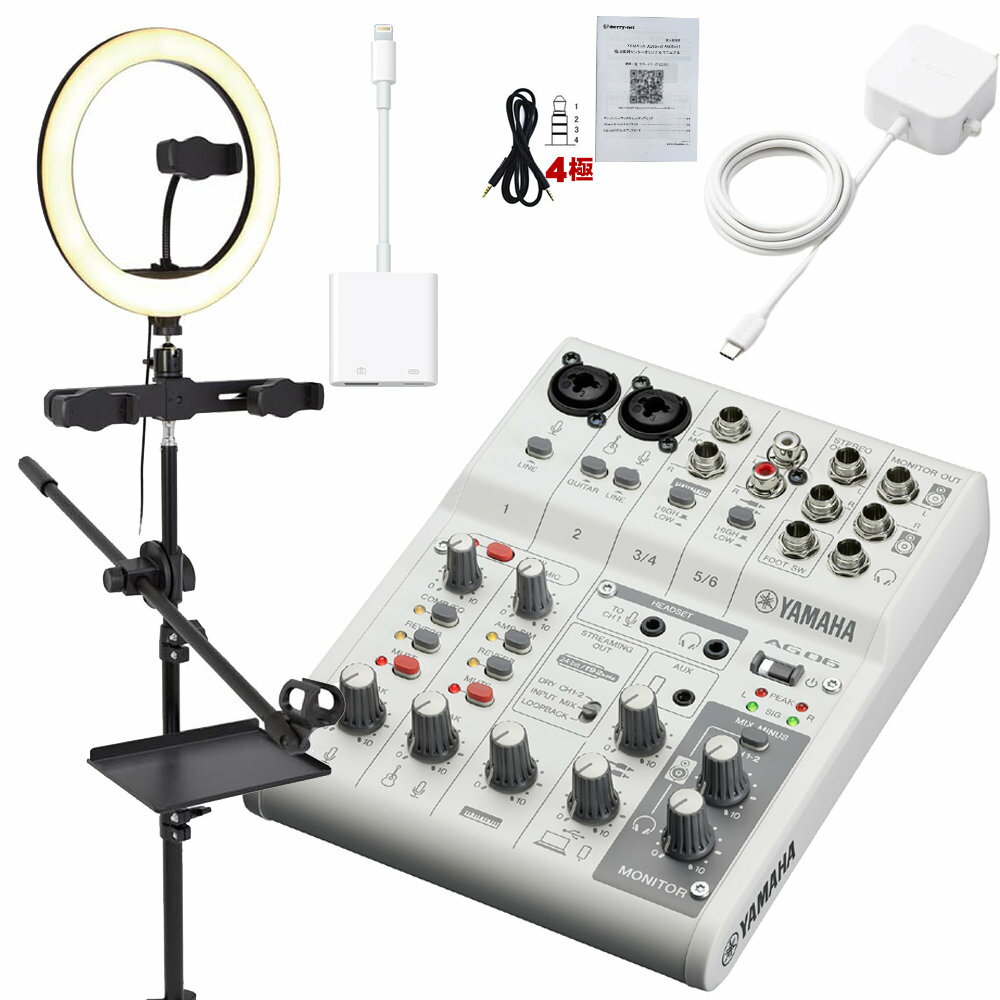 YAMAHA AG06mk2 W (リングライト付きマイクスタンド+iPhone接続ケーブルセット) オリジナルマニュアル付き