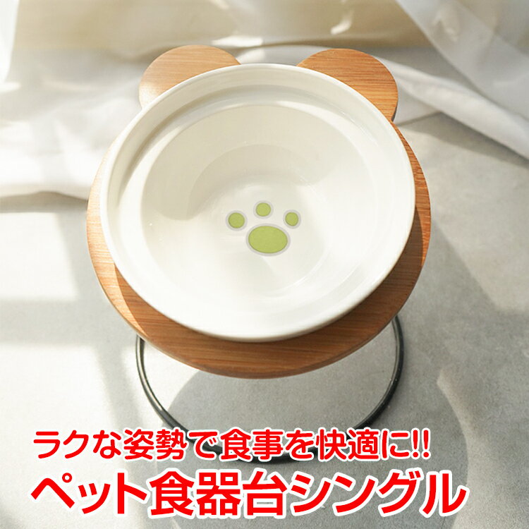 【20(金)10時〜15%オフCP】ペット食器台 シングル フードボウル 食べやすい 肉球 陶器 磁器 犬 猫 ネコボウル お皿 餌入れ 水入れ エサ皿 かわいい pt068