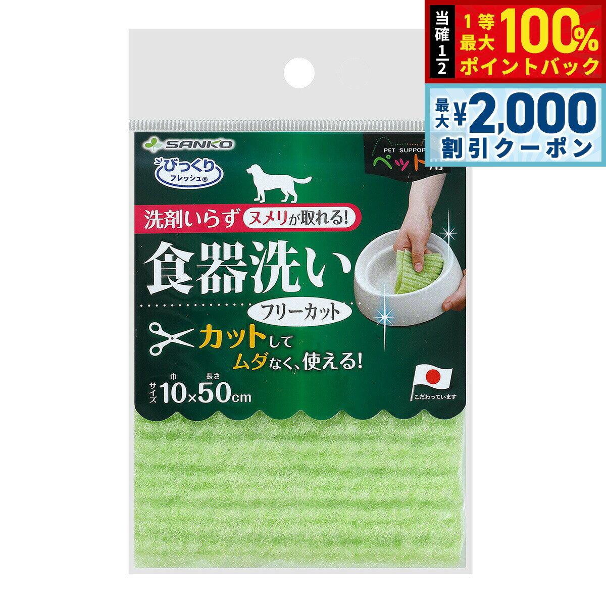 食器のヌメリ取り ペット用食器洗い フリーカット 10×50cm 犬猫用 スポンジ キッチン 洗剤いらず エコ びっくりフレッシュ サンコー ペット用品 台所用品(メール便は4個まで)